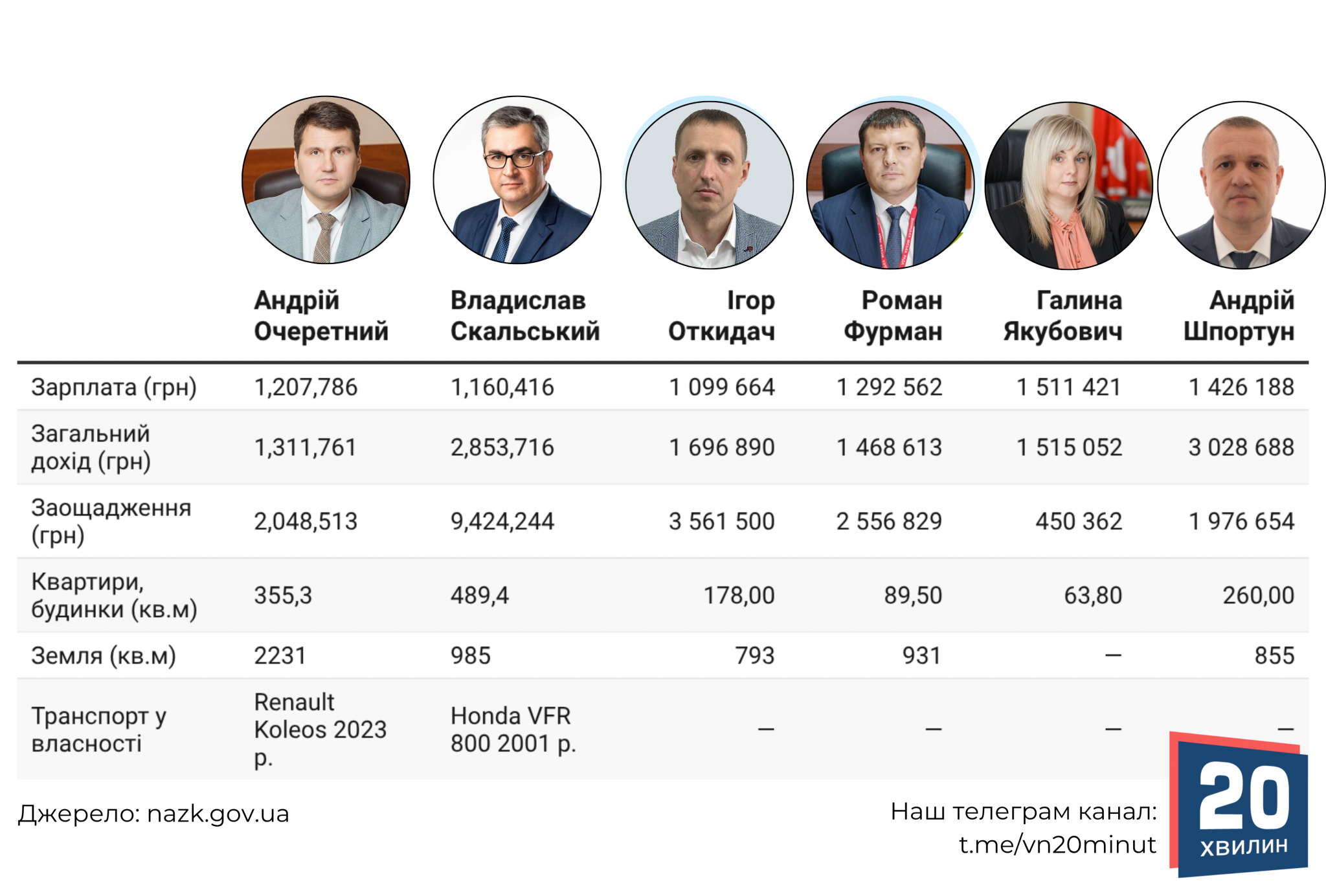 Почнемо з Андрія Очеретного. Посадовець задекларував понад 1,2 мільйона гривень зарплати. Крім того, чоловік вказав, що отримав близько 38 тисяч гривень процентів від банківського вкладу та 65 тисяч гривеь пенсії.