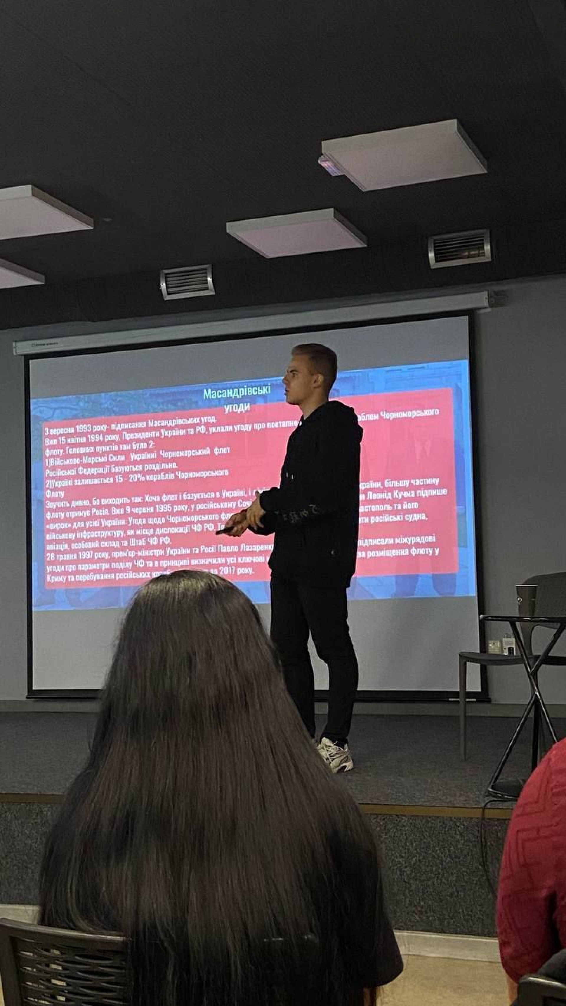 Захід розпочався з лекції про становище Збройних сил України у різні роки незалежності, далі тема лекція перейшла у висвітлення основних складових сильних збройних сил (оборонно-промисловий комплекс, зв'язок, структуру менталітет). Проводив лекцію студент Вінницького національного технічного університету, менеджер Deep State, засновник інформаційного каналу на мілітарну тематику «Vanguard» — Максим Джус.