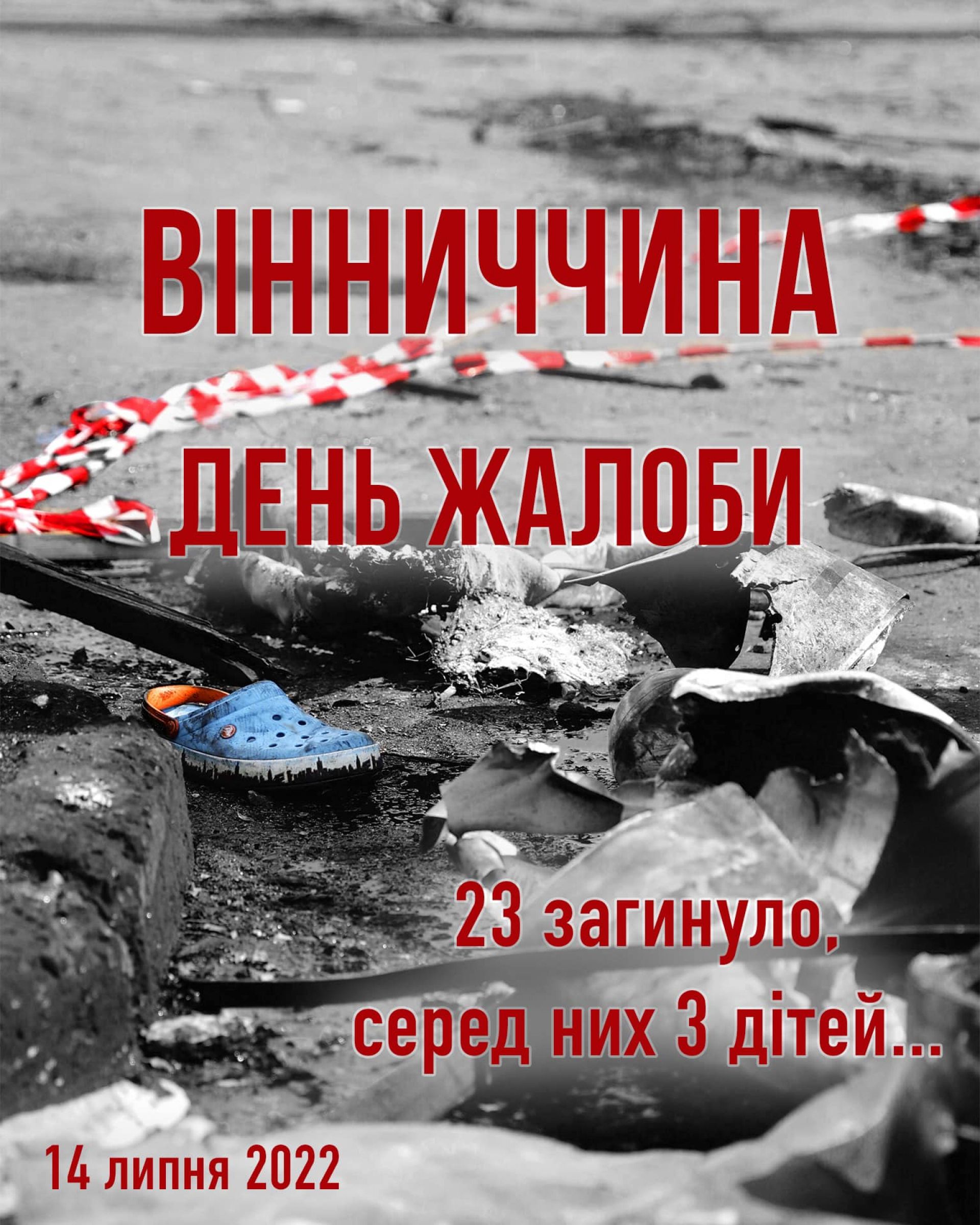 - Вінниця зазначала ракетного обстрілу. Є загиблі та поранені. У місті та області 15 липня оголосили Днем жалоби.