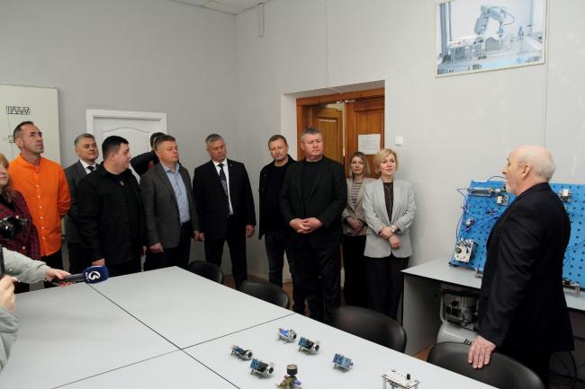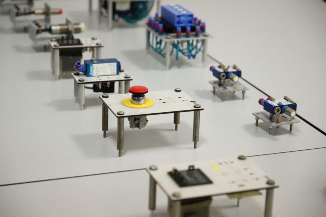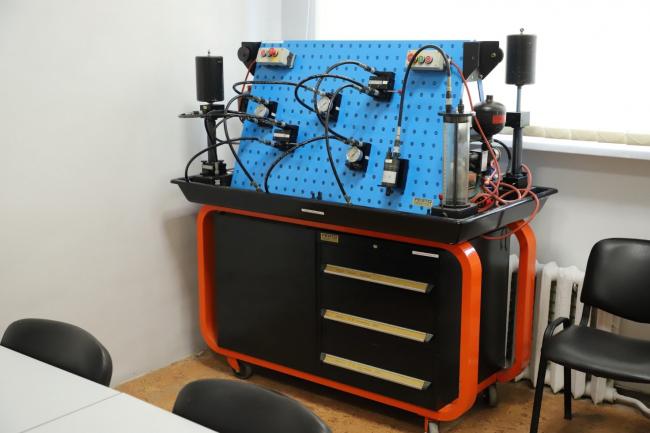 Лабораторію моделювання систем мехатроніки презентував завідувач кафедри технологій та автоматизації машинобудування Леонід Козлов. Робота в лабораторії передбачає проведення науково-дослідних робіт з моделювання, налагодження та аналізу електропневматичних та електрогідравлічних систем мехатроніки.