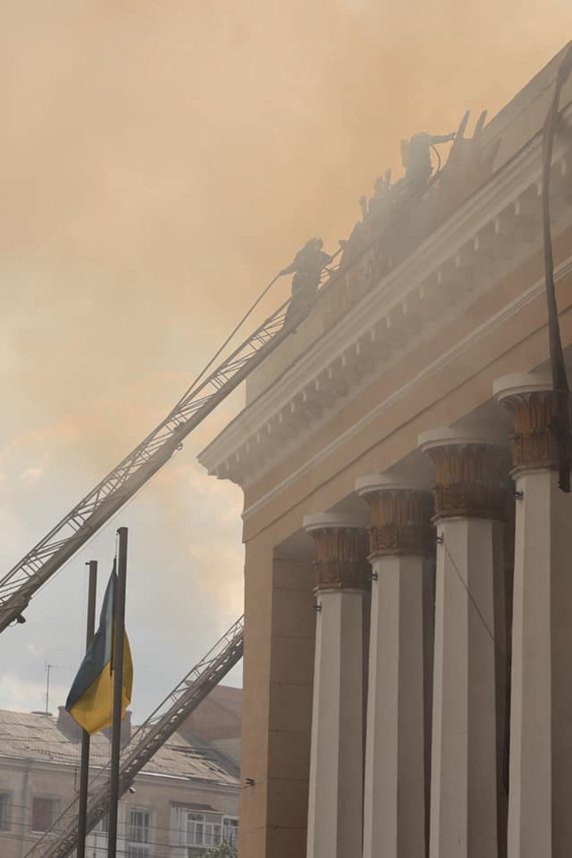 Також дісталось сусіднім будинкам, частина з яких збудовані щонайменше у першій половині ХХ століття, та пам'ятнику на пошану Повітряних Сил ЗСУ 1998 року.
