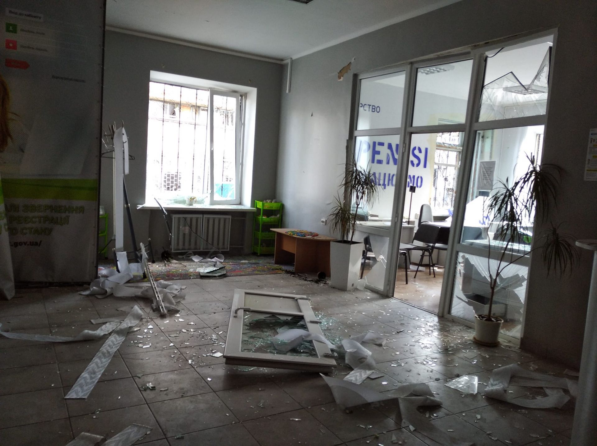 Відділення розміщується біля Будинку офіцерів. Приміщення теж зазнало руйнувань. Оприлюднили фото працівниць, які були всередині. Одна із них — загинула.