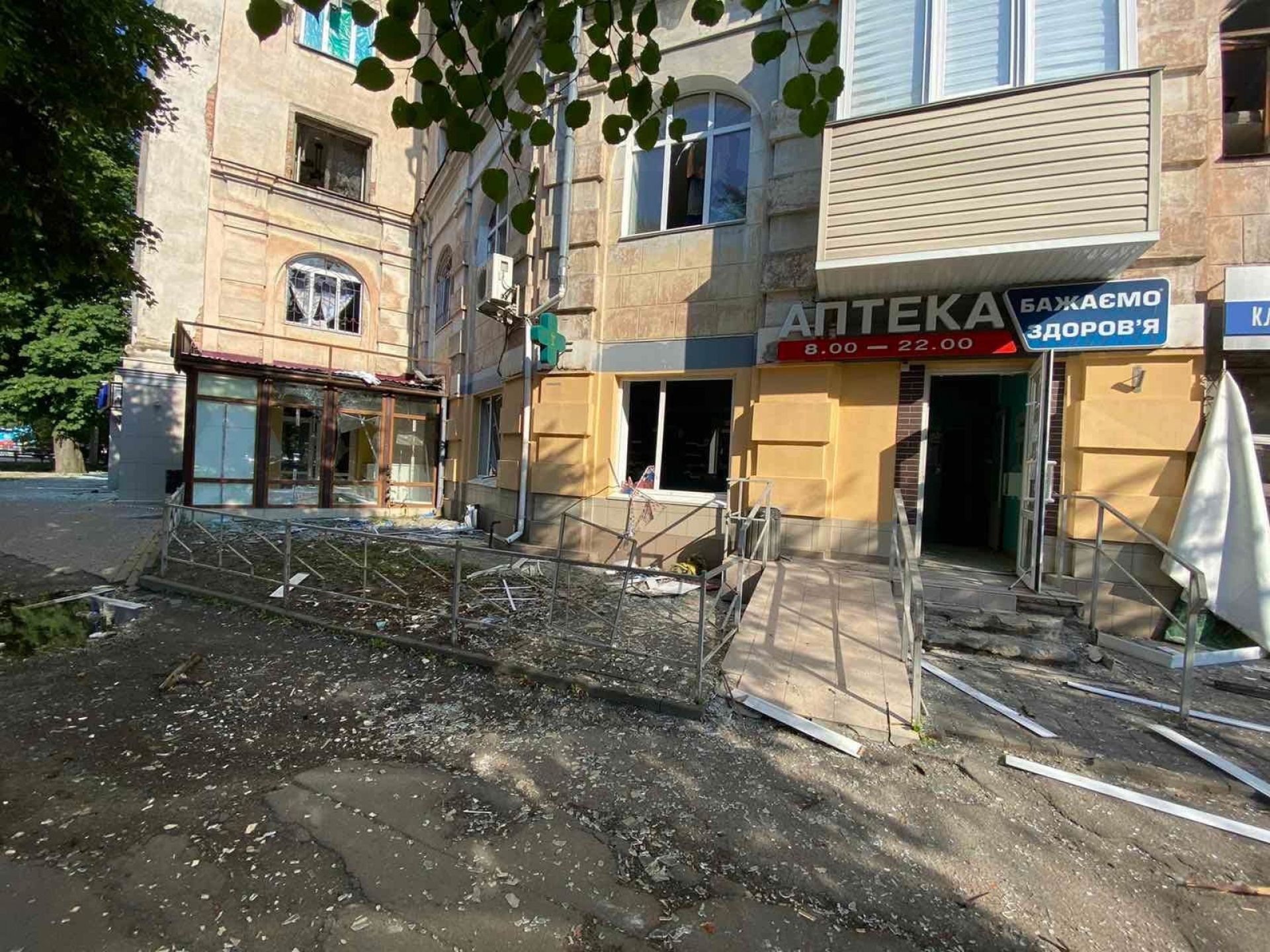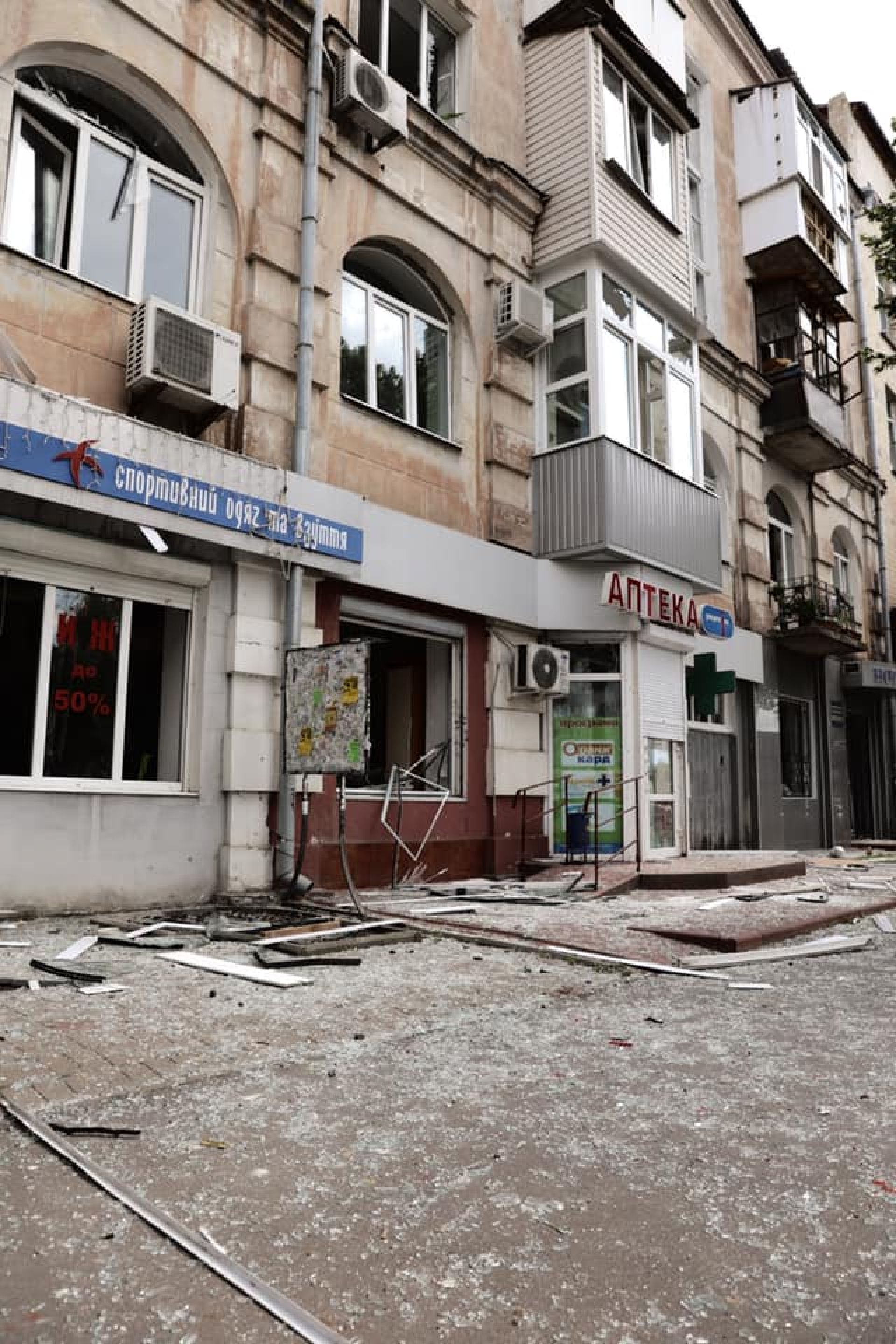 Постраждала ще одна аптека, а біля неї магазин спортивного одягу: