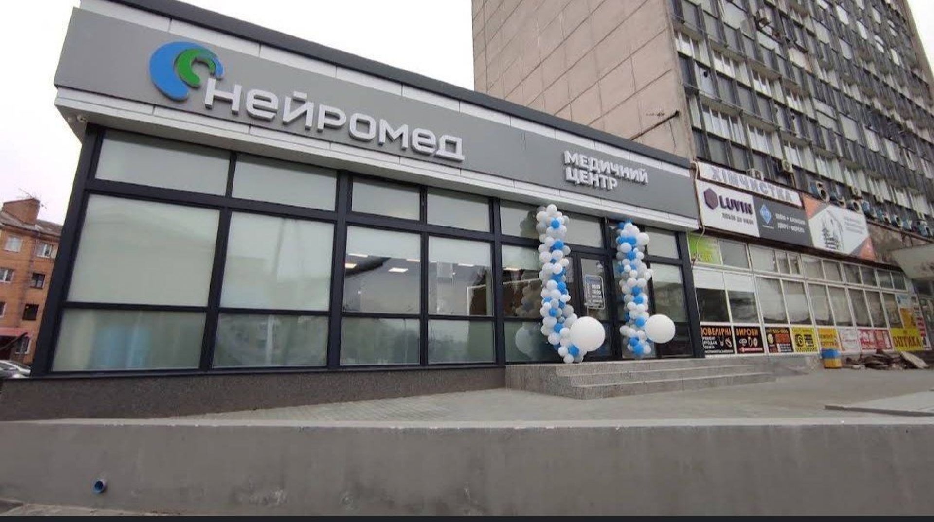 «Нейромед» був на першому поверсі біля будинку побуту «Юбілейний». Ось так заклад виглядав до удару: