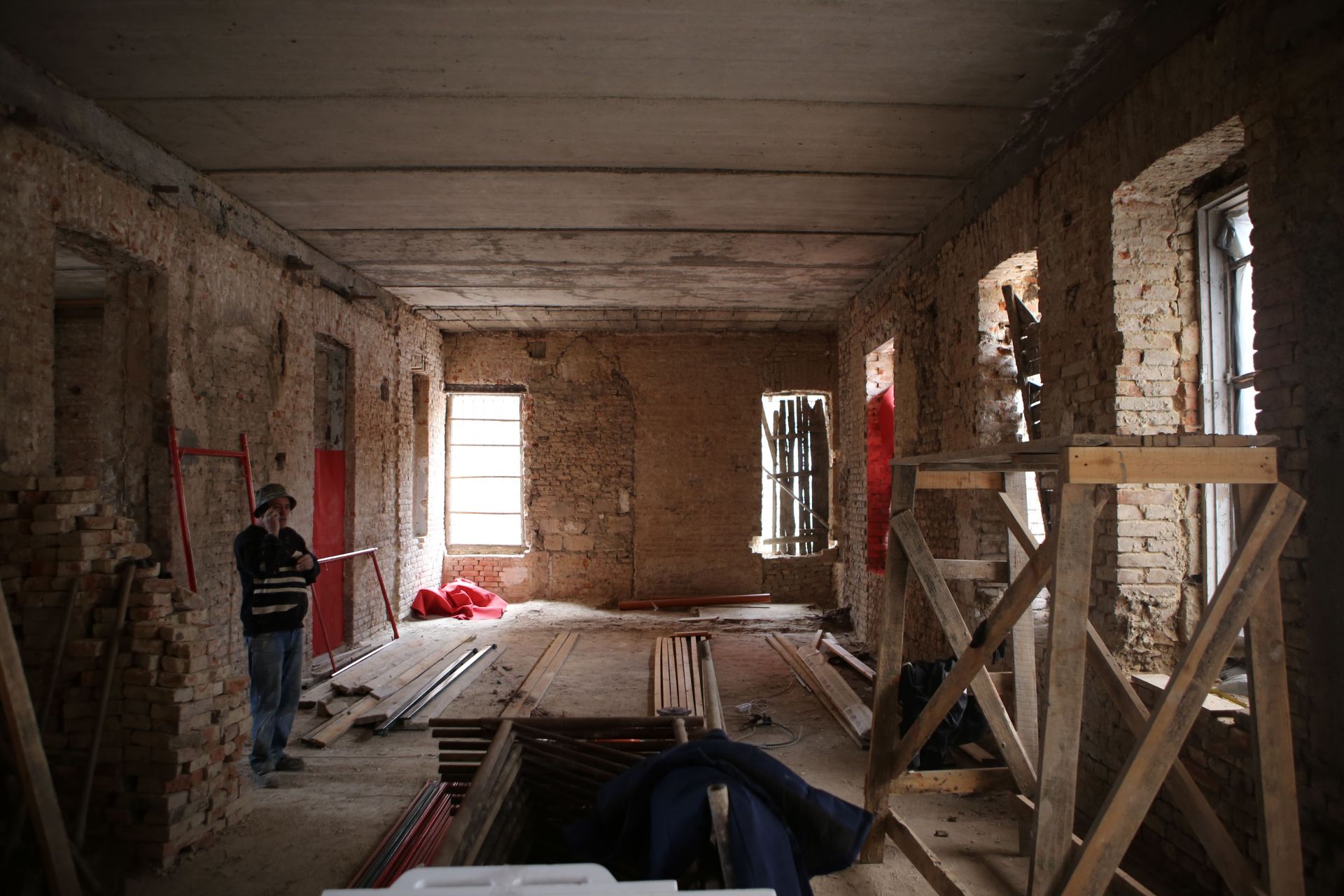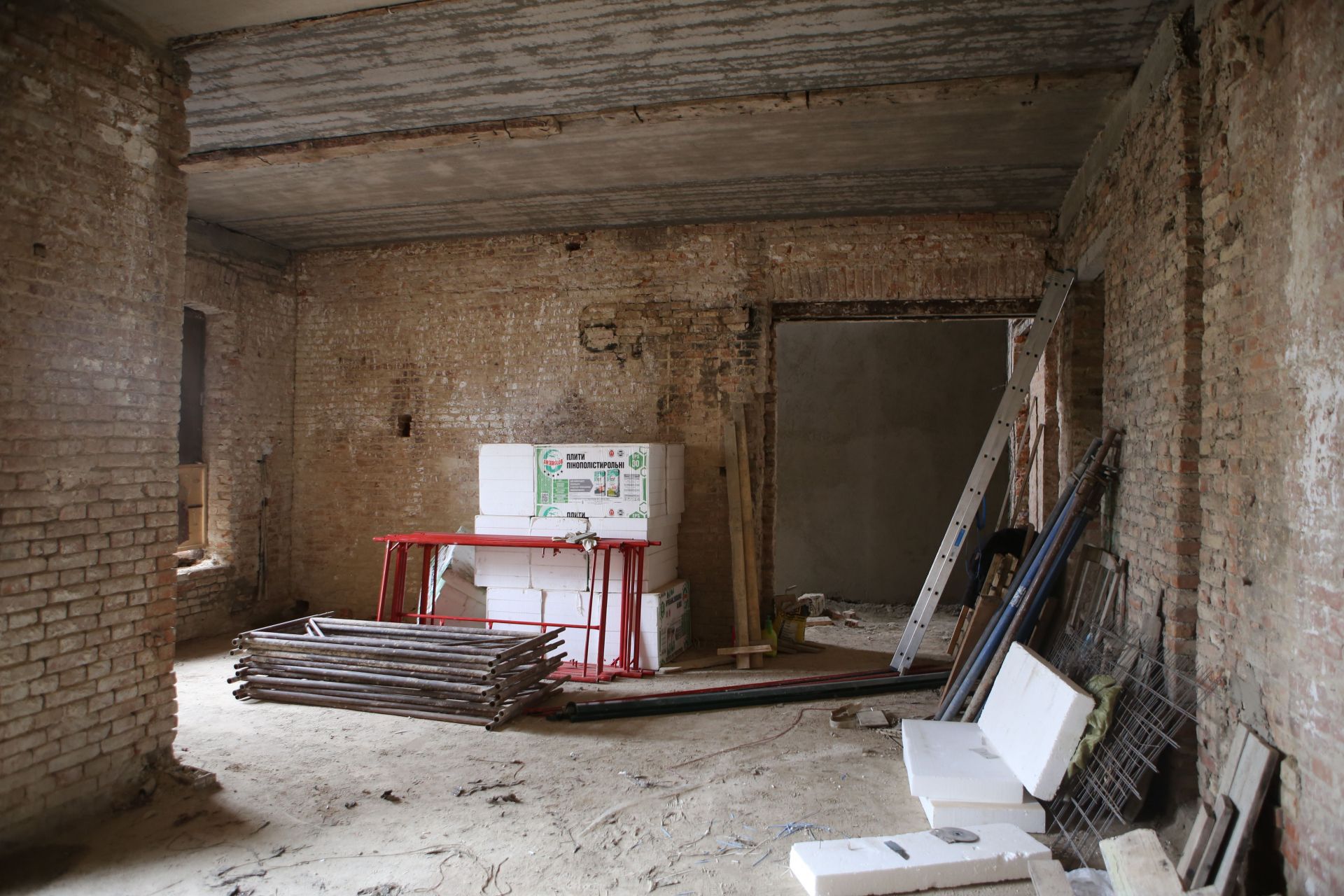 Перехожі вже можуть бачити, що вперше за багато десятиліть у приміщенні розпочали якісь відновлювальні роботи. Всередині демонтували аварійні сходи, що вели на другий поверх, а зі стін видалили старе тинькування. У деяких місцях укріпили фундамент. На об’єкті щодня працює бригада робітників.