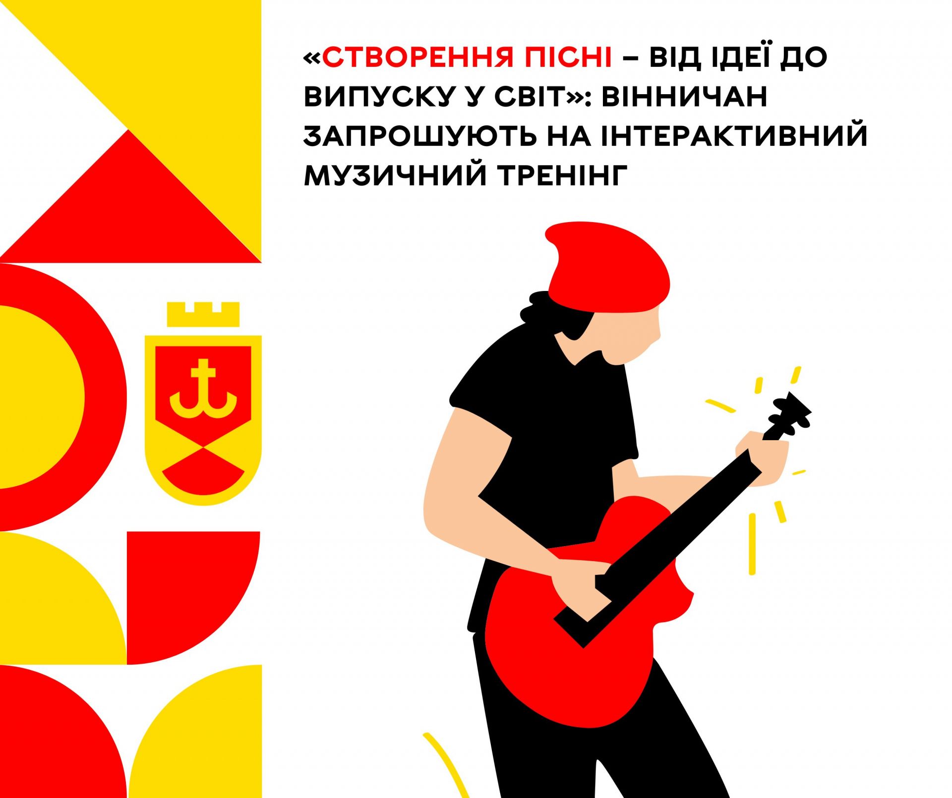 - У Вінниці пройде музичний тренінг «Створення пісні — від ідеї до випуску у світ». До участі, яка безкоштовна, запрошують долучитися містян та переселенців.