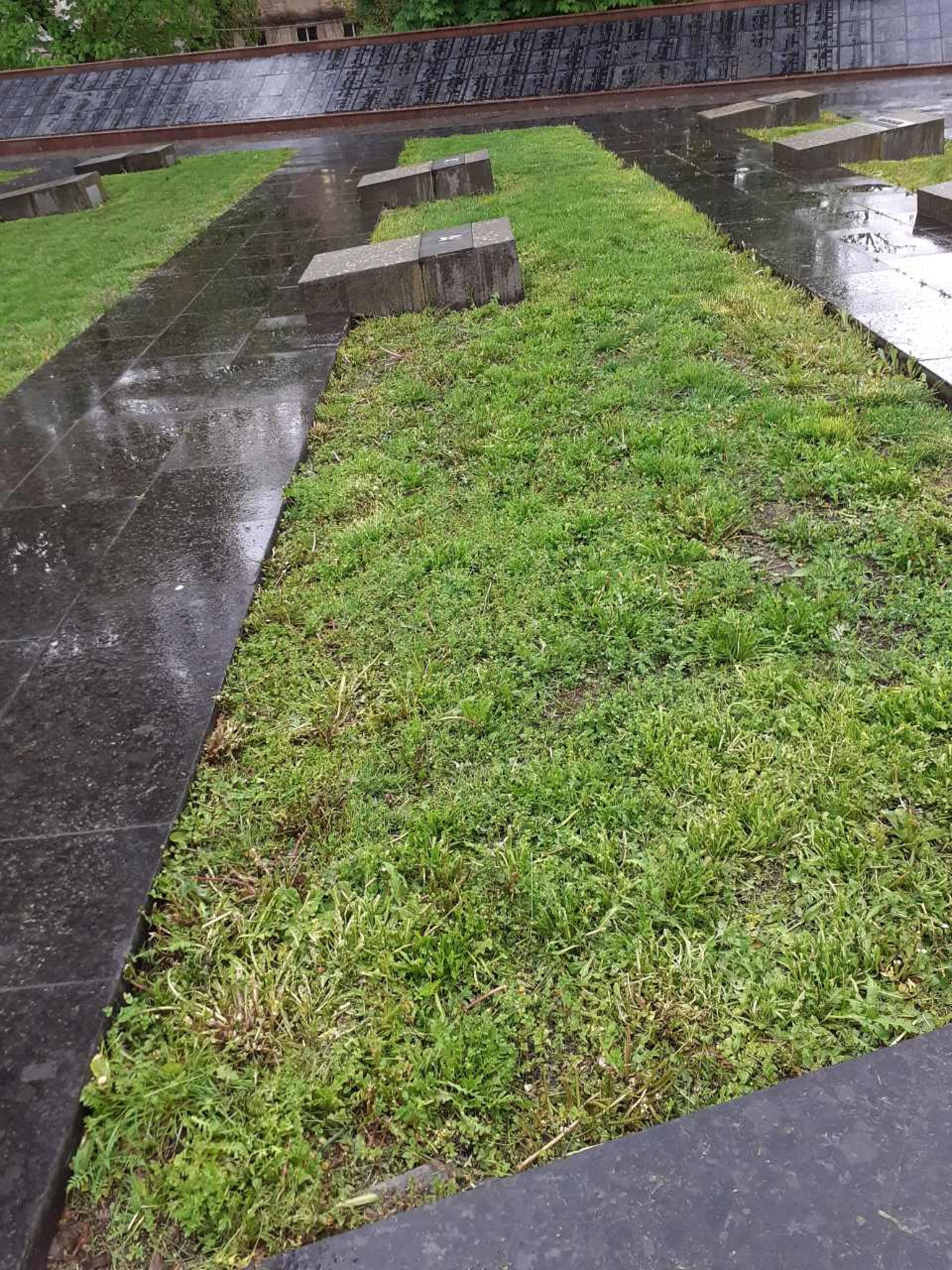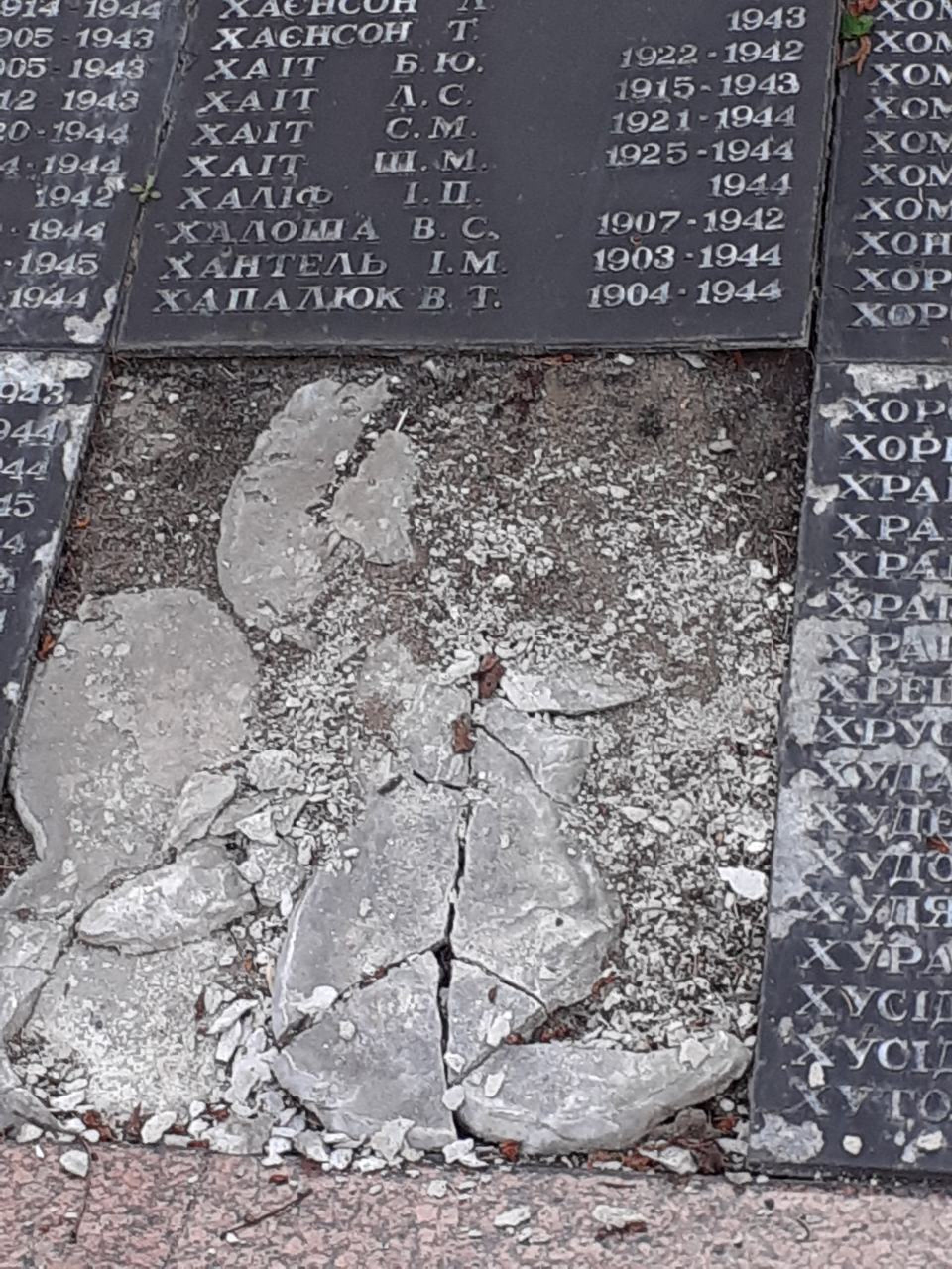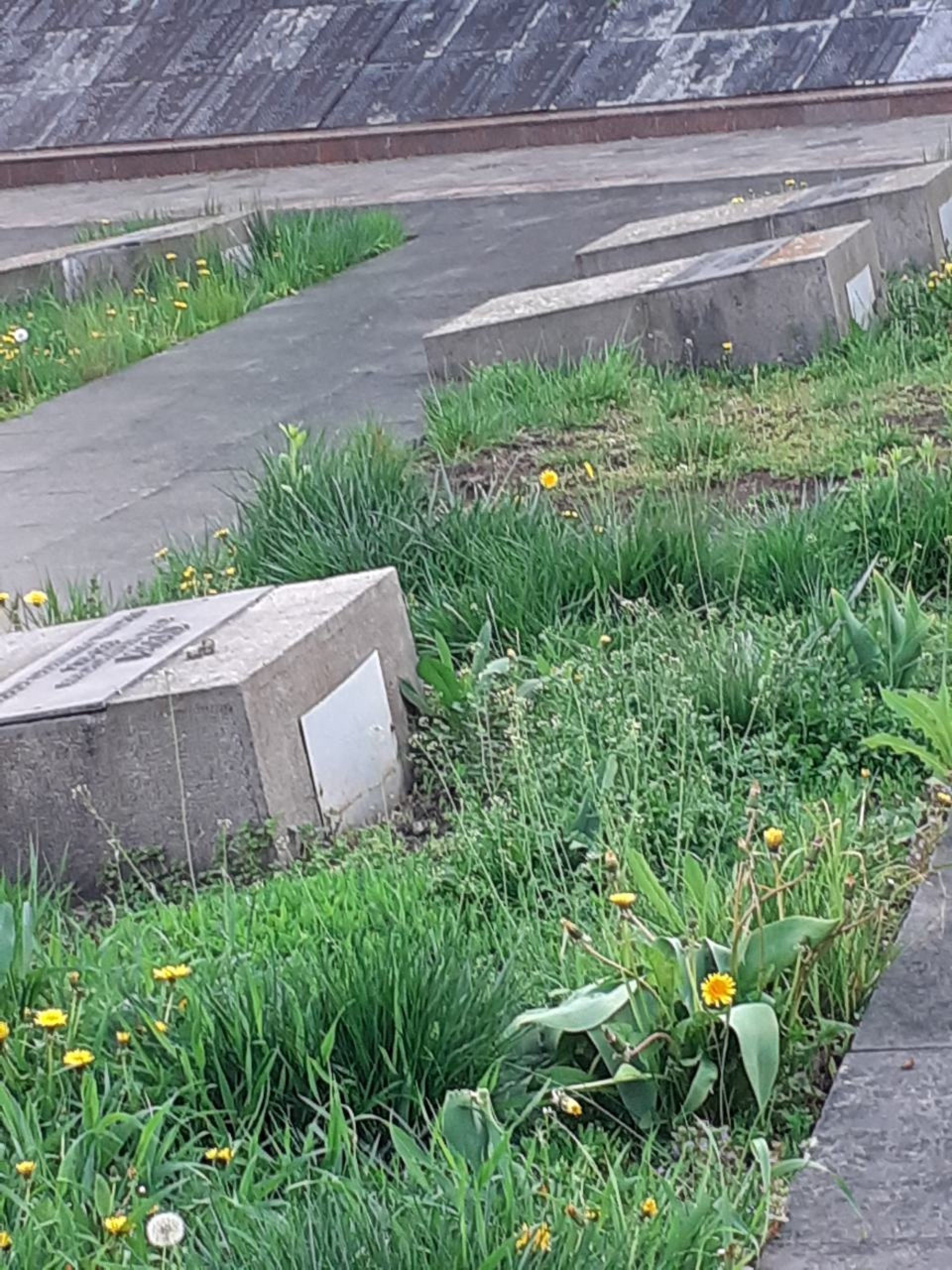 Вона надіслала фото з меморіального комплексу, які робила раніше і свіжі. На них видно, що там були побиті дошки з прізвищами загиблих воїнів. Дошки відновили. Трава дійсно скошена. Проте, вигляд самого пам’ятника Невідомим солдатам залишився незмінним.