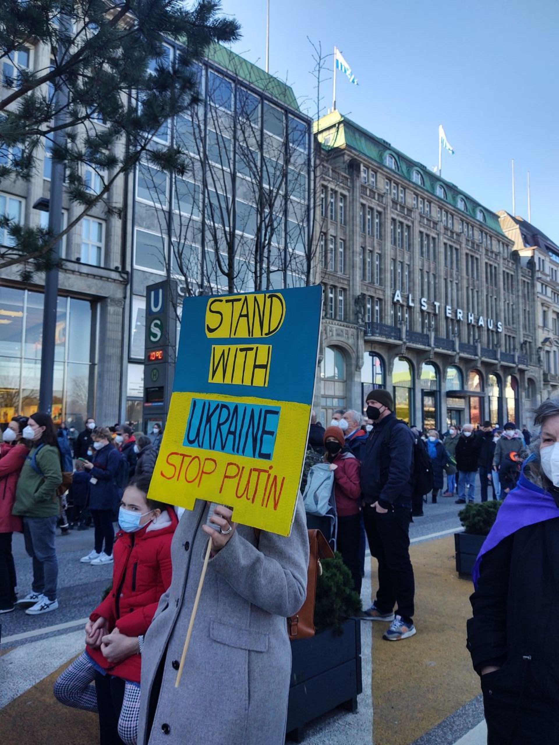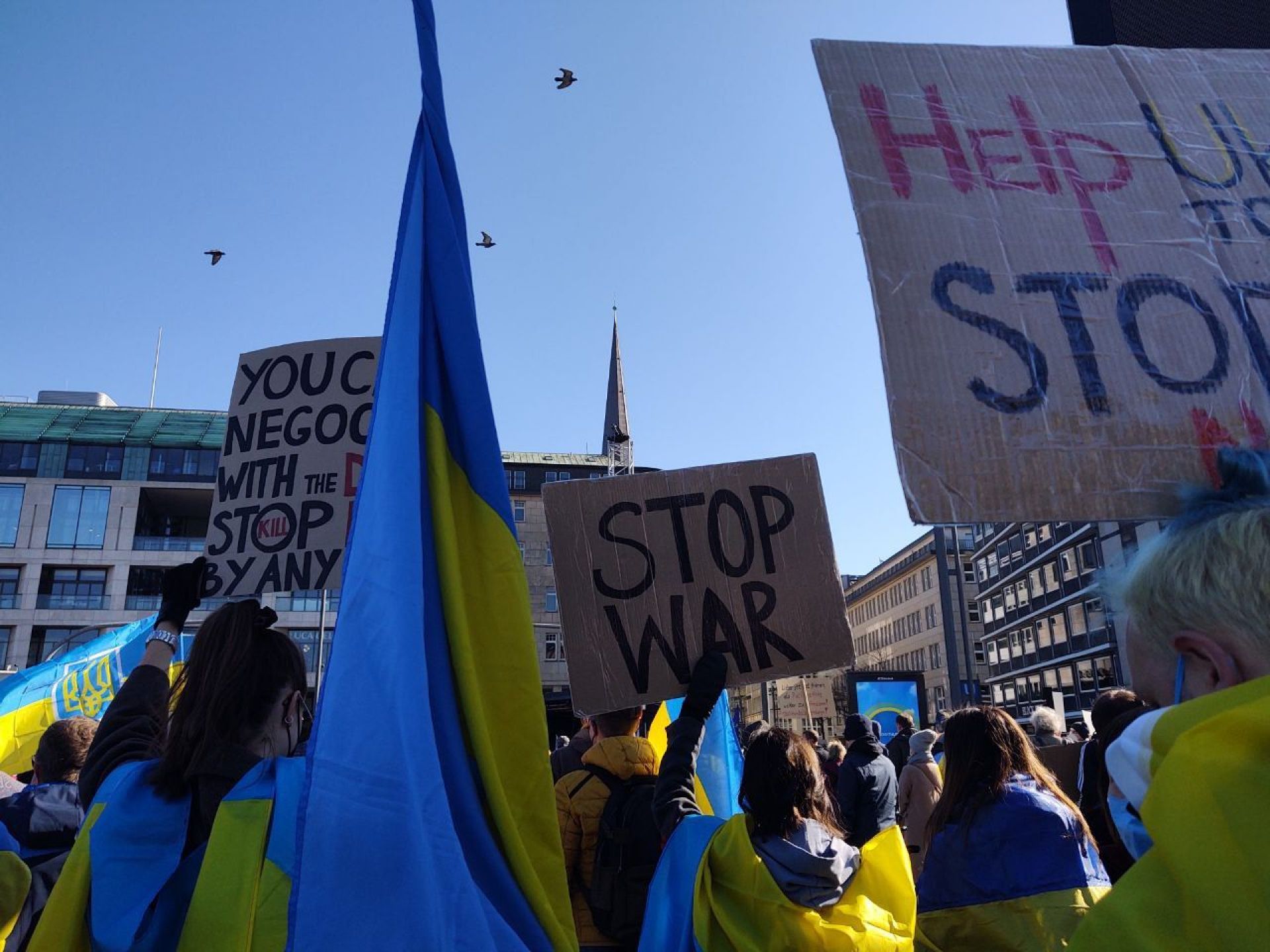 — 13 березня. Гамбург. Ми проти війни з Україною і за негайне припинення вогню! В 14 годин дня на демонстрацію на Jungfernstieg зібралося майже 10 тисяч людей. Захід відкрився звучанням гімну України і хвилиною мовчання. Ведуча, Таня Шаффлер, подякувала усім присутнім за те, що вони прийшли і об’єдналися у боротьбі за мир в Україні, — розповідає Людмила Кулик.