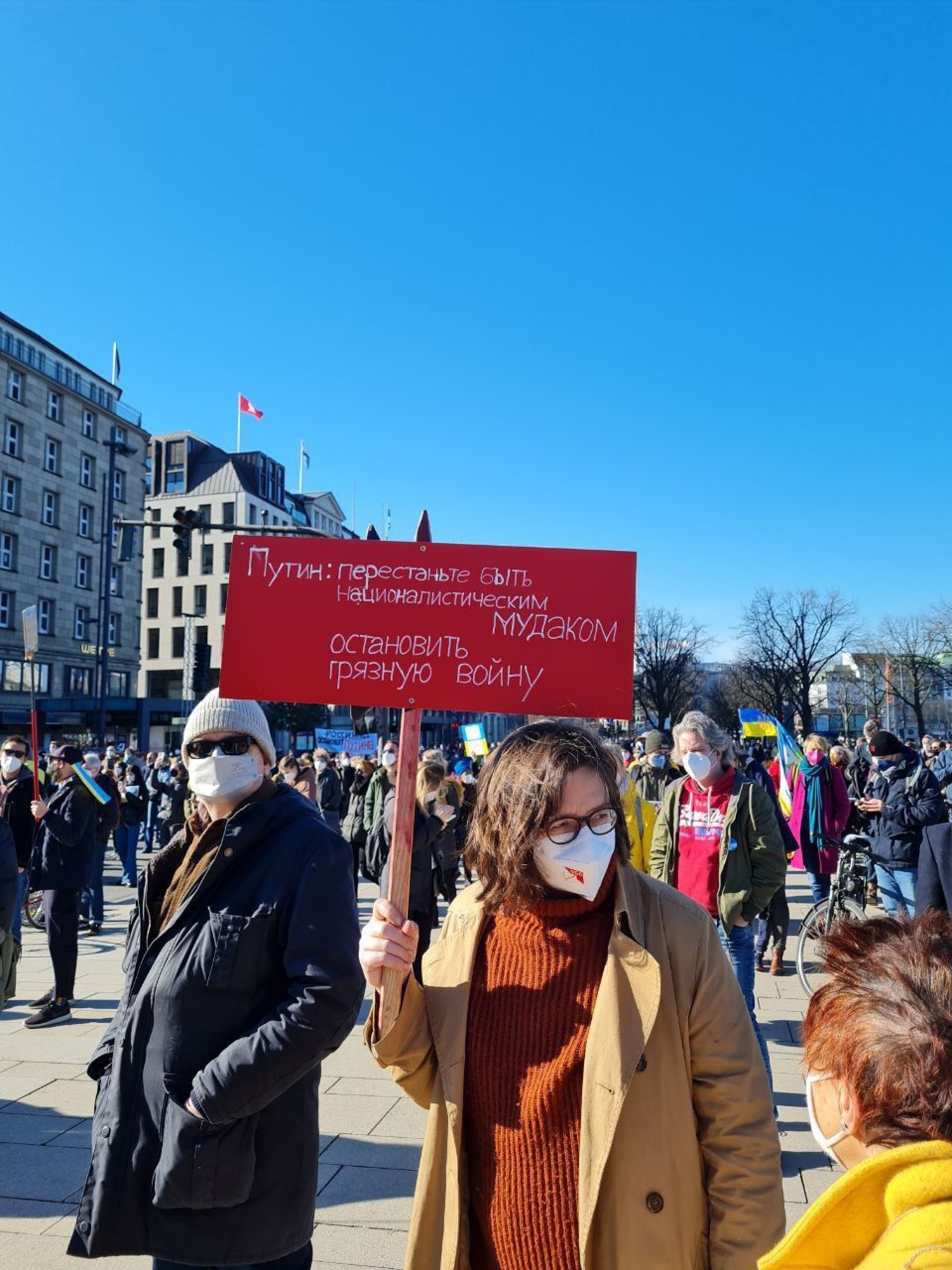 Вона також переклала для читачів 20minut.ua промови, які звучала на мітингу в Гамбурзі на підтримку України. Він відбувся на вулиці Jungfernstieg вчора, 13 березня.
