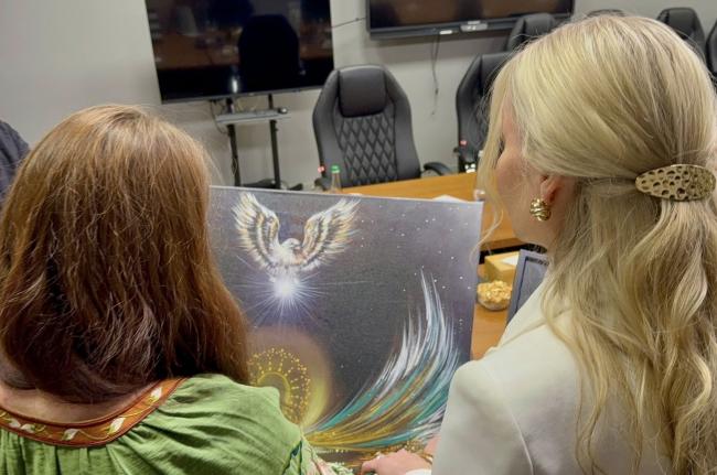 Вінницька художниця Діана Подолянчук подарувала символічну картину доньці Кітта Келлога