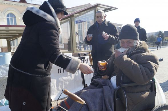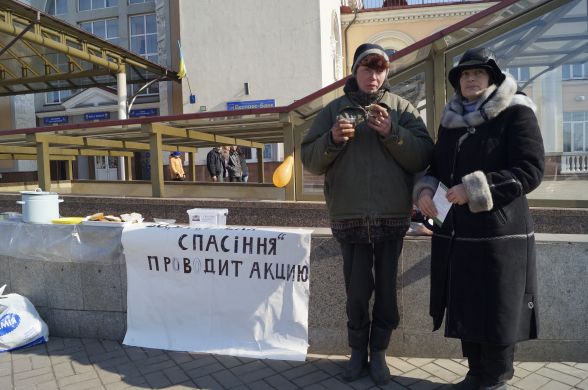 Двоє волонтерів з благодійної організації «Скеля спасіння» провели на залізничному вокзалі акцію «Нагодуй ближнього». Всім охочих пригощали вівсяним печивом, бутербродами з салом та гарячим чаєм. Щоправда, волонтери не взяли з собою стола і не домовились з адміністрацією вокзалу, через що виникло непорозуміння з працівниками.