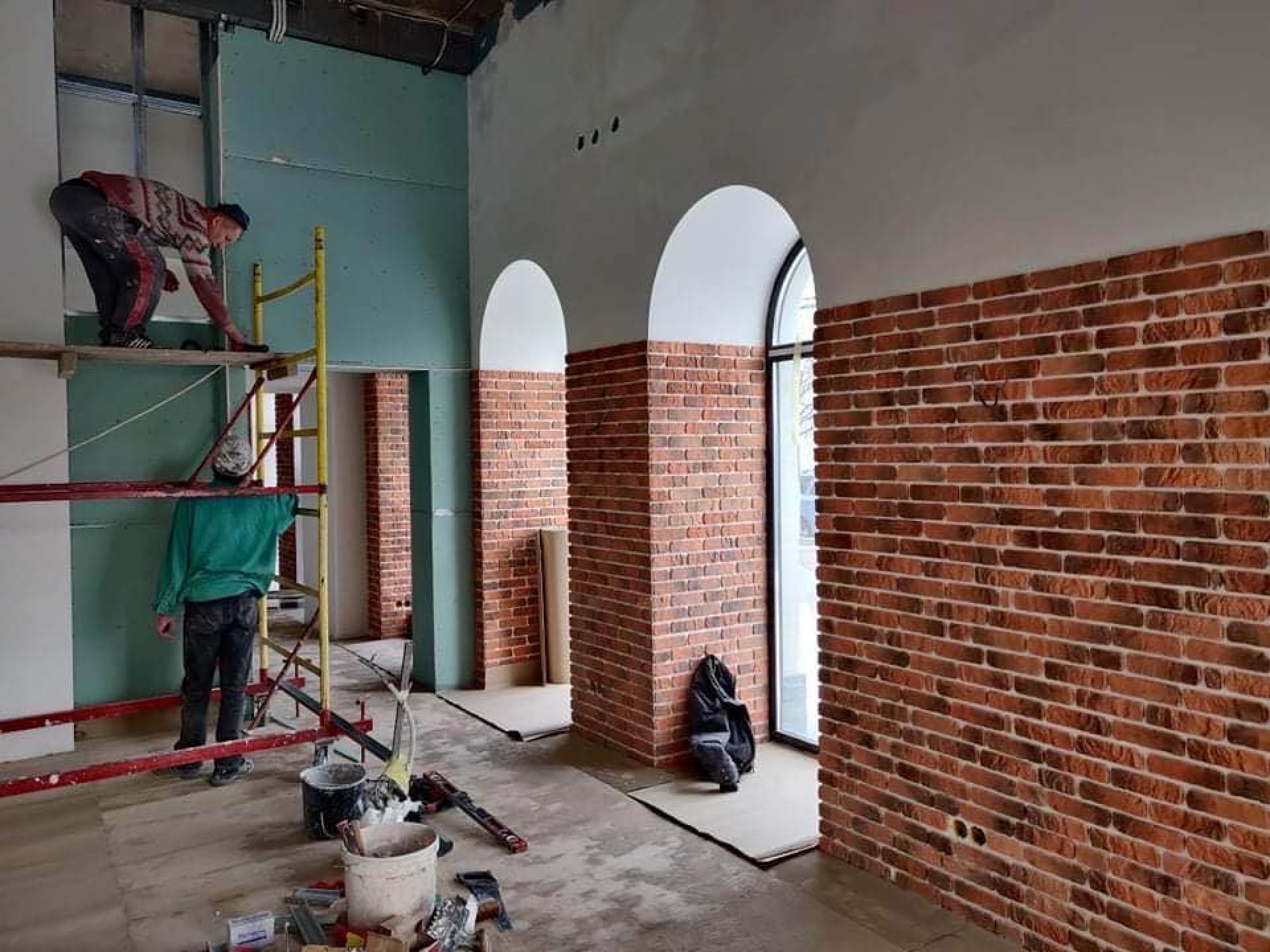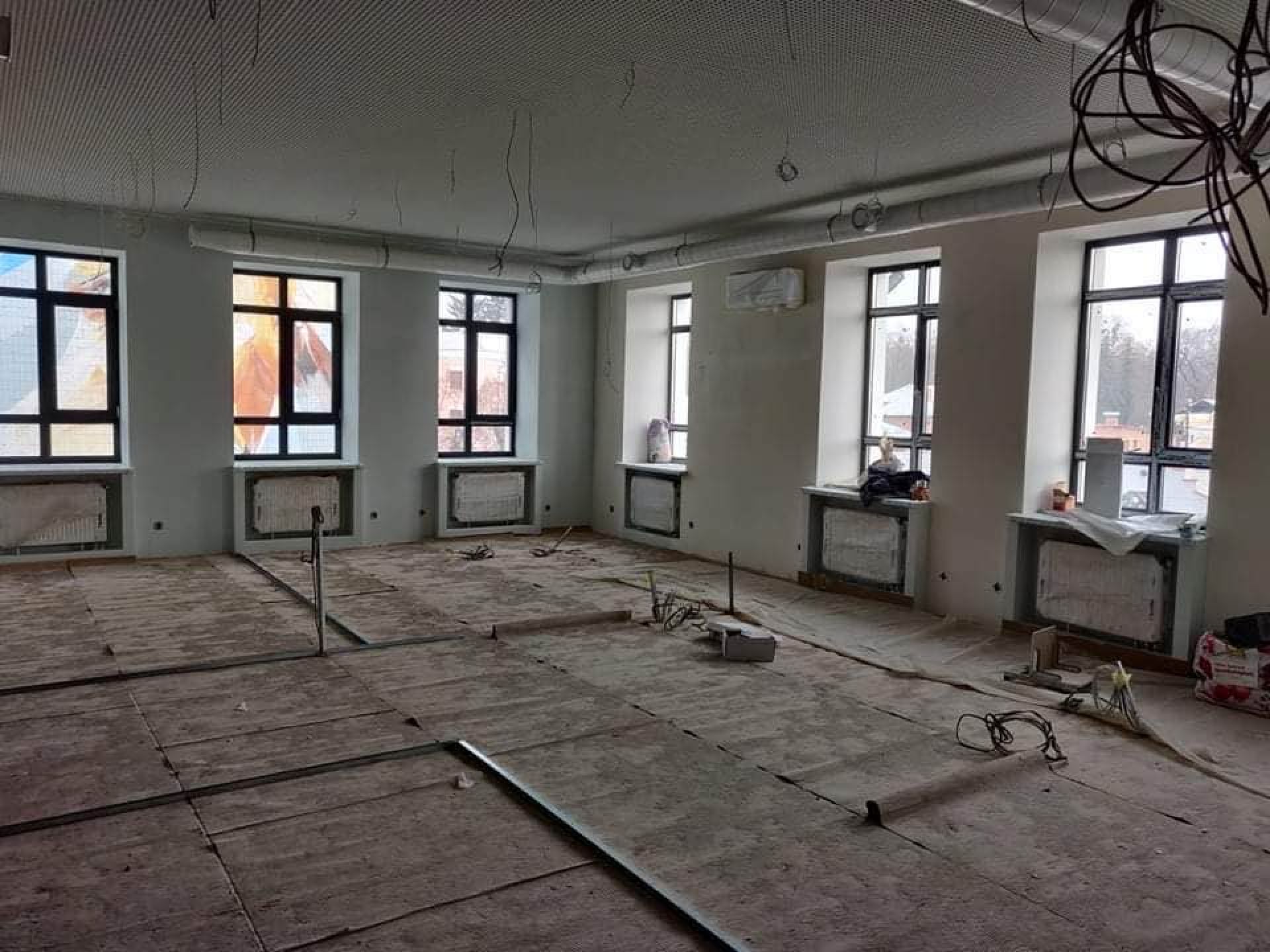 Запустили систему теплопостачання будівлі, провели монтаж зовнішнього електропостачання, влаштували наливну підлогу, змонтували декоративну кладку в інтер'єрах першого поверху, відновили літню терасу, проводять малярні роботи на всіх поверхах будівлі.