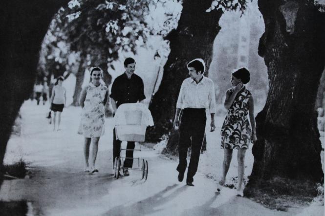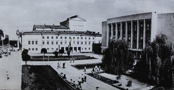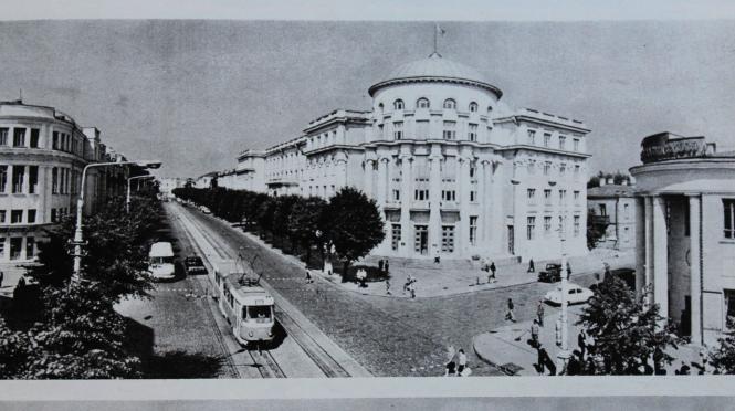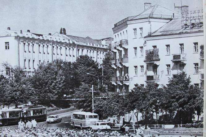 Багато зелені у місті помітно навіть на чорно білих фотографіях. А ще на вулицях вкрай мало автомобілів та площі, які важко нині упізнати.