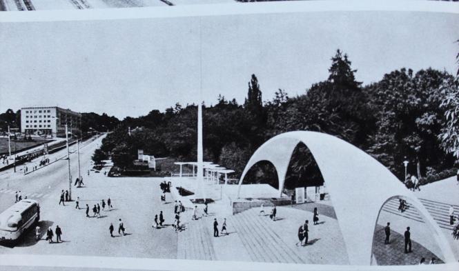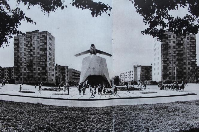 Пам'ятник з МіГом змінили під час реконструкції проспекту Космонавтів. Фото у матеріалі з фотоальбому «Вінниччина», 1977 рік