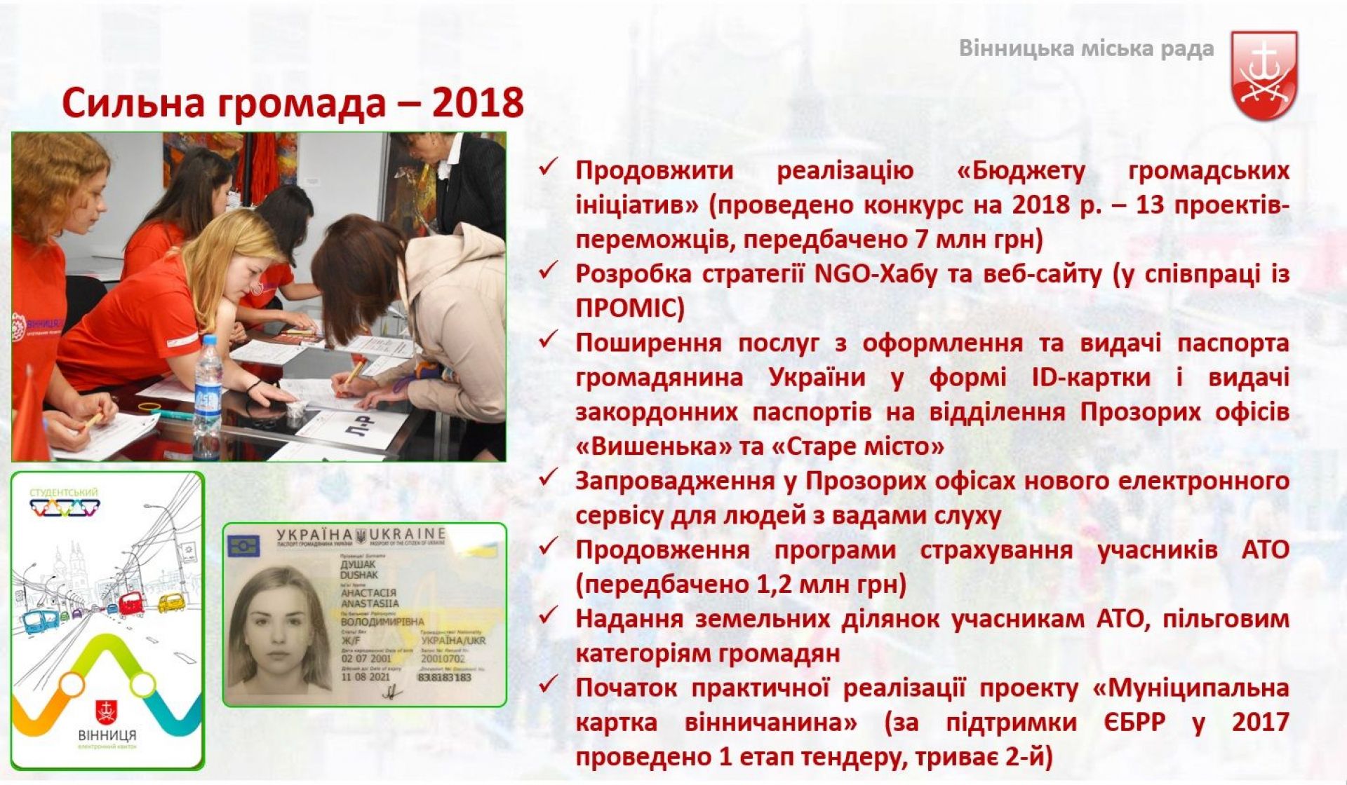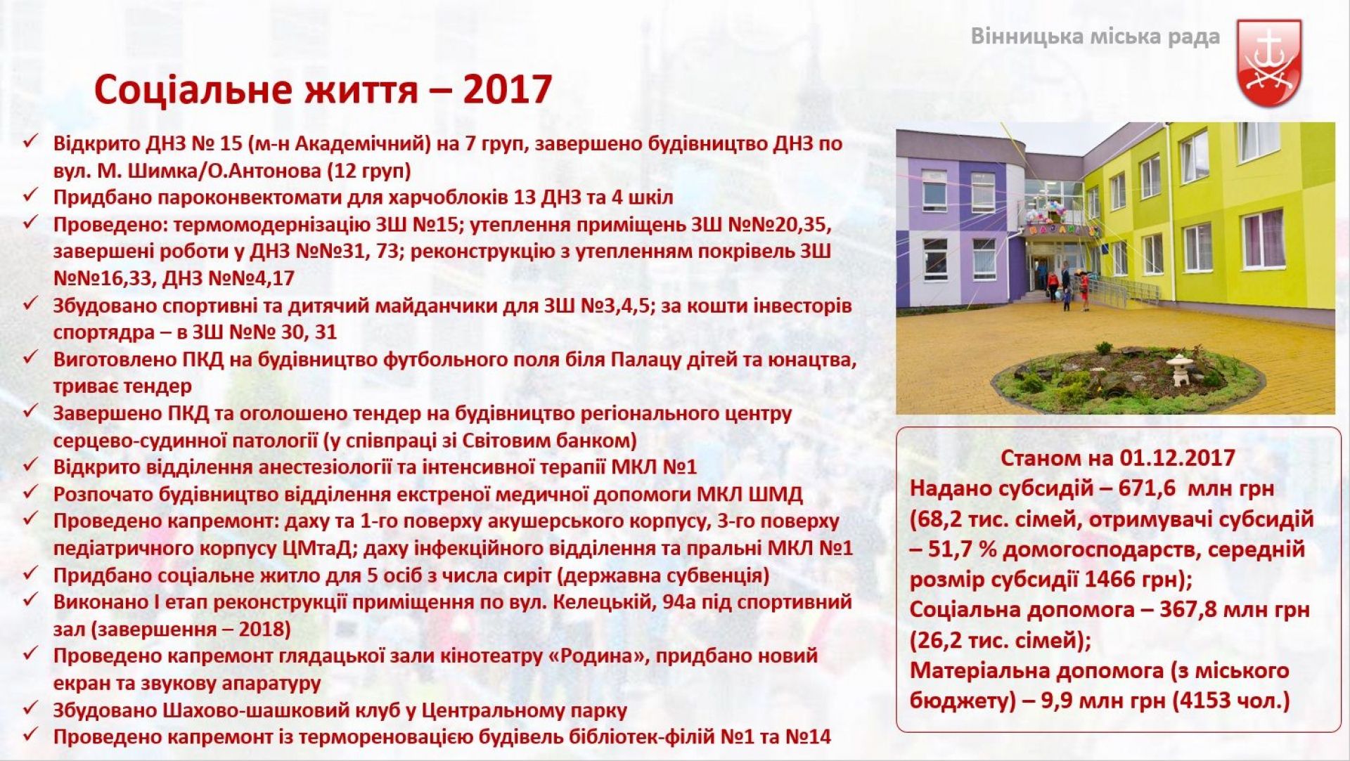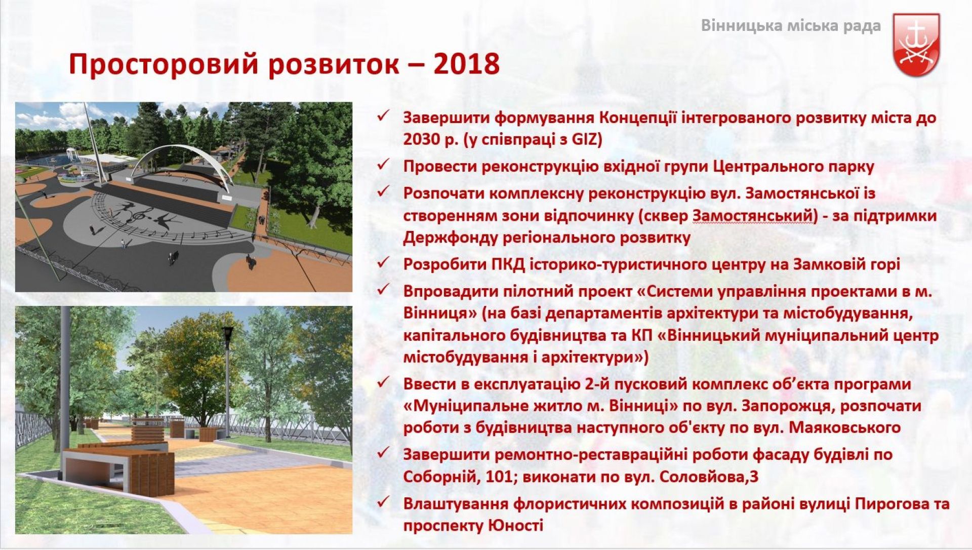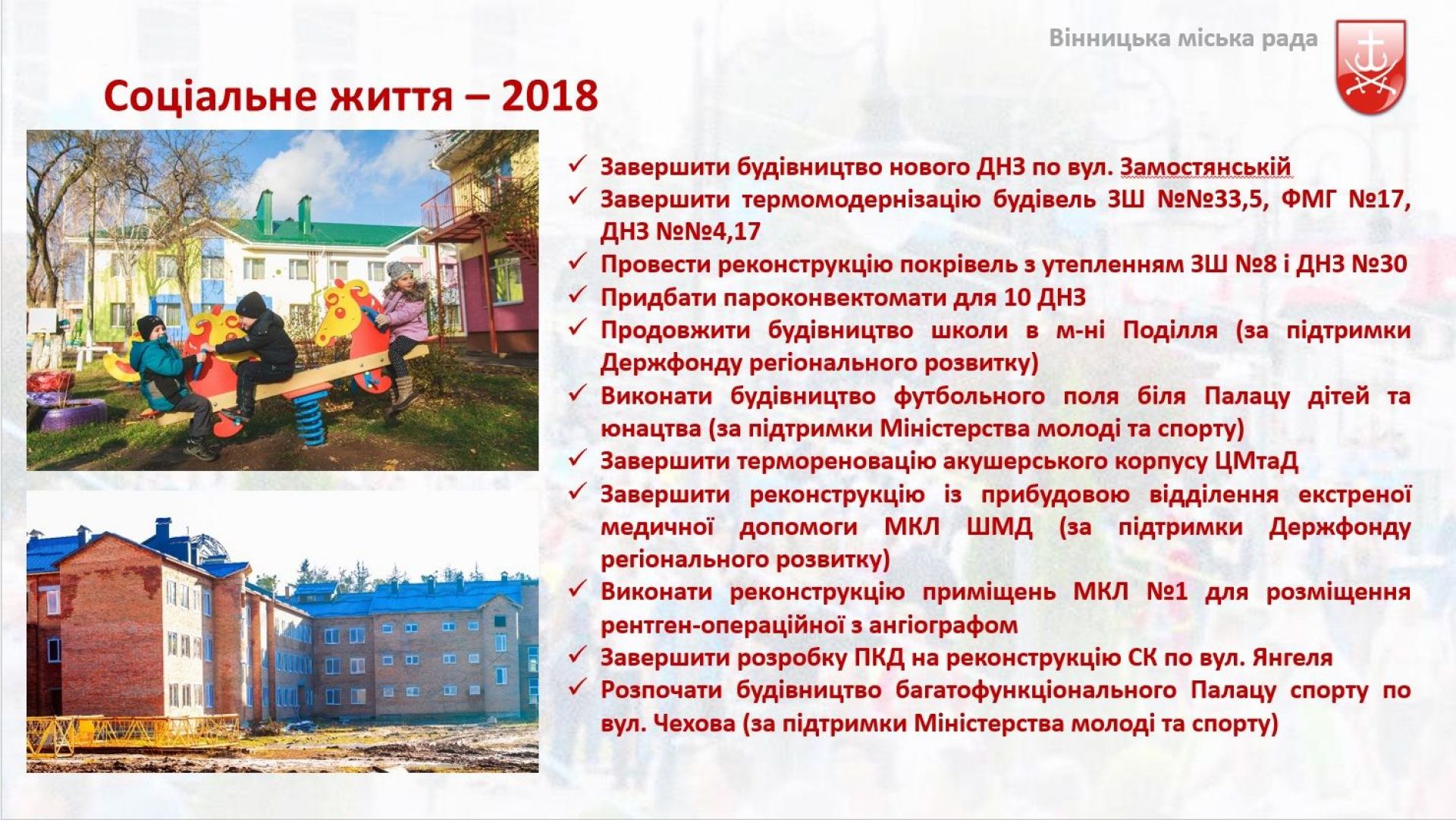 - А також озвучив амбітні плани на 2018 рік: створити сотен робочих місць, будівництво шкіл, лікарень та масштабний благоустрій Вінниці