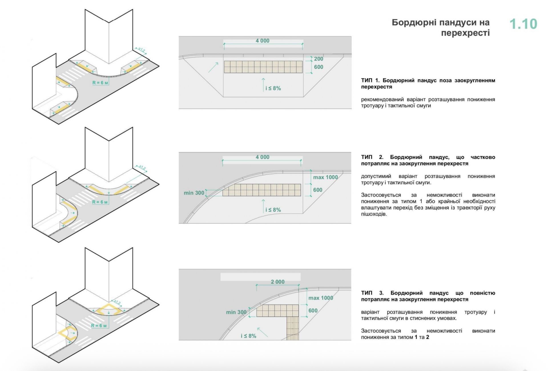 - пониження бордюрів;