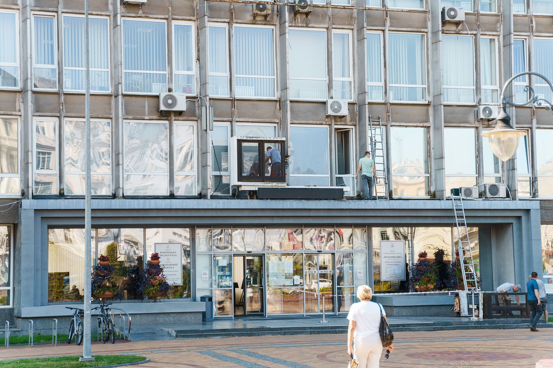 У Вінниці розпочалися роботи з демонтажу старого годинника на головній адмінбудівлі міста. Він прослужив містянам майже пів століття, але повністю вичерпав свій ресурс. На його місці встановлять новий годинник з LED-екраном.