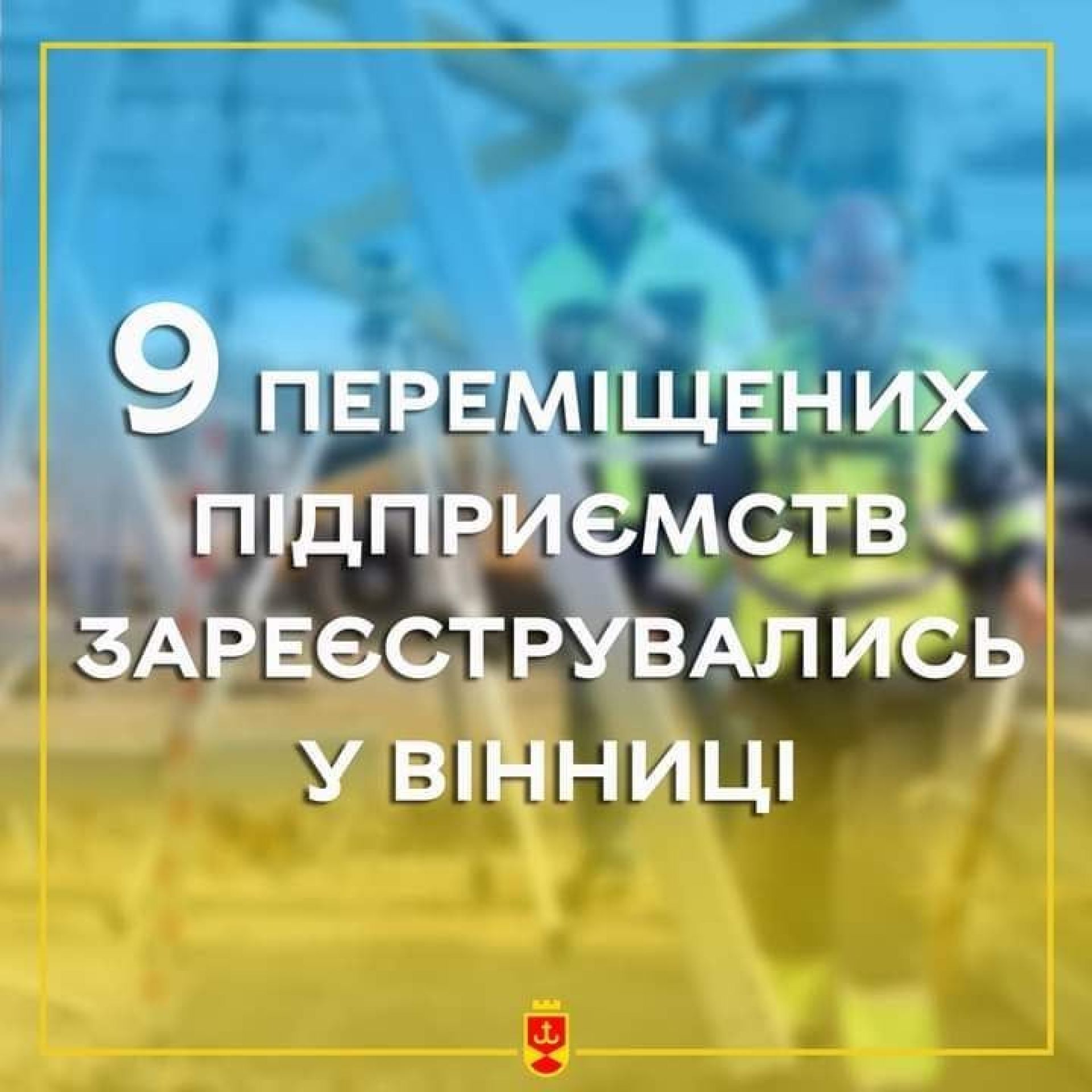 - Свої потужності до Вінницької міської територіальної громади переносять сім підприємств з Маріуполя та по одному з Харкова і Дніпра. Обладнання вже частково перевезено. Вирішуються питання кадрового забезпечення.