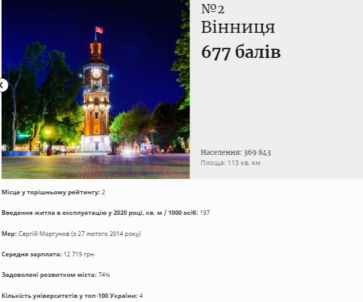 Наше місто зайняло другу сходинку рейтингу. Аналогічну Вінниця посідала і торік.