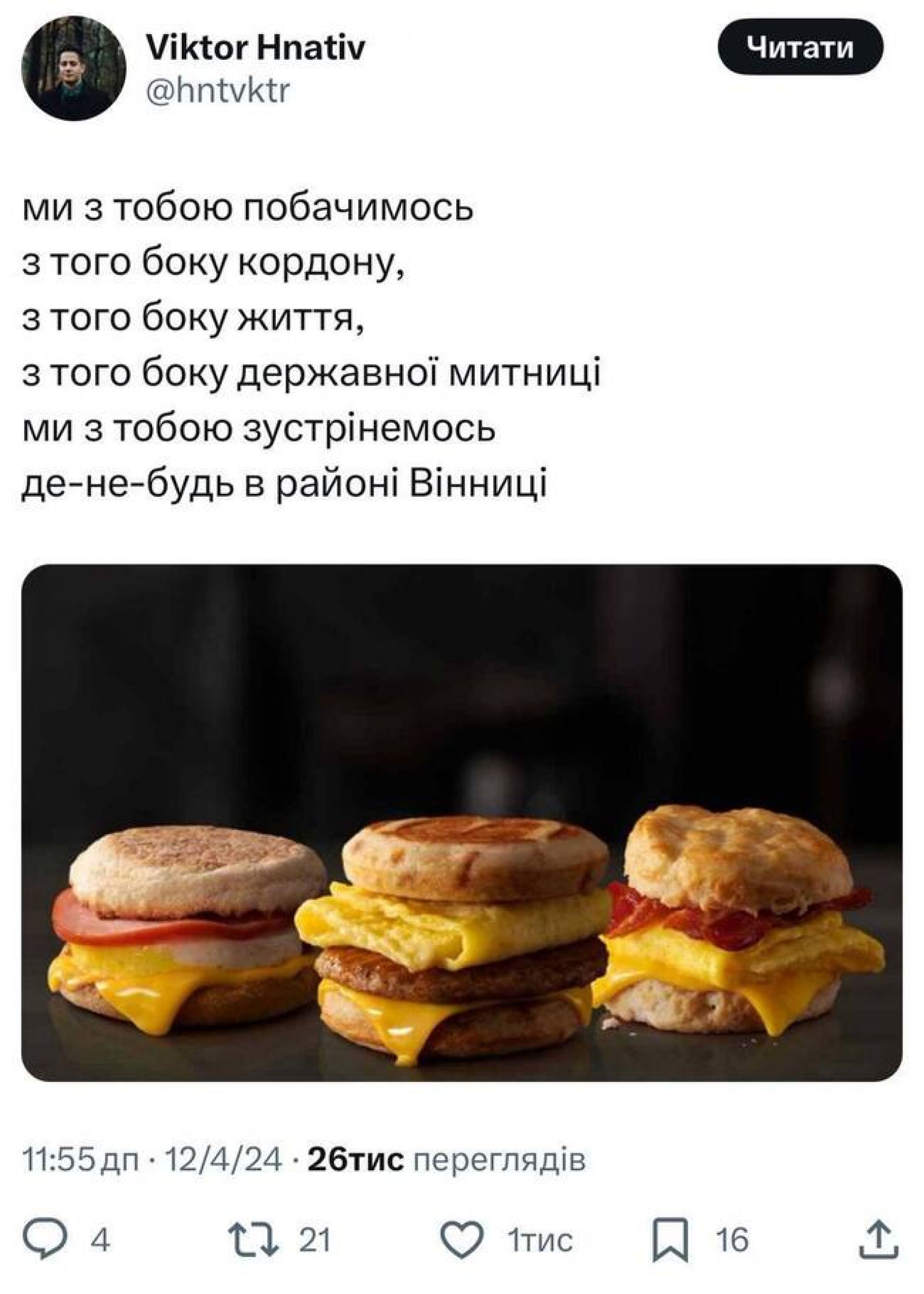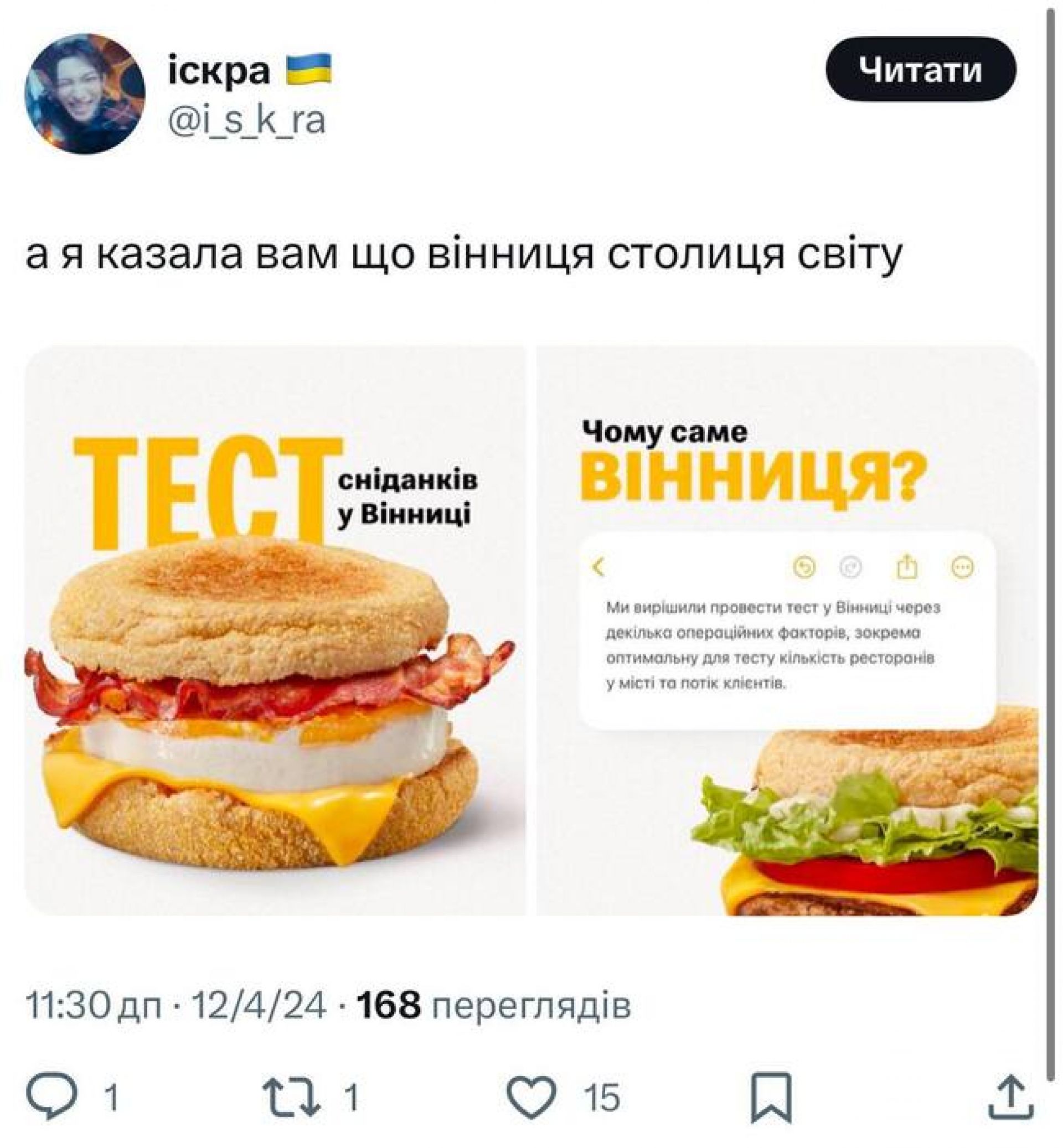 Вінниця стала першим містом, в якому McDonaldʼs відновив сніданкове меню. Меми