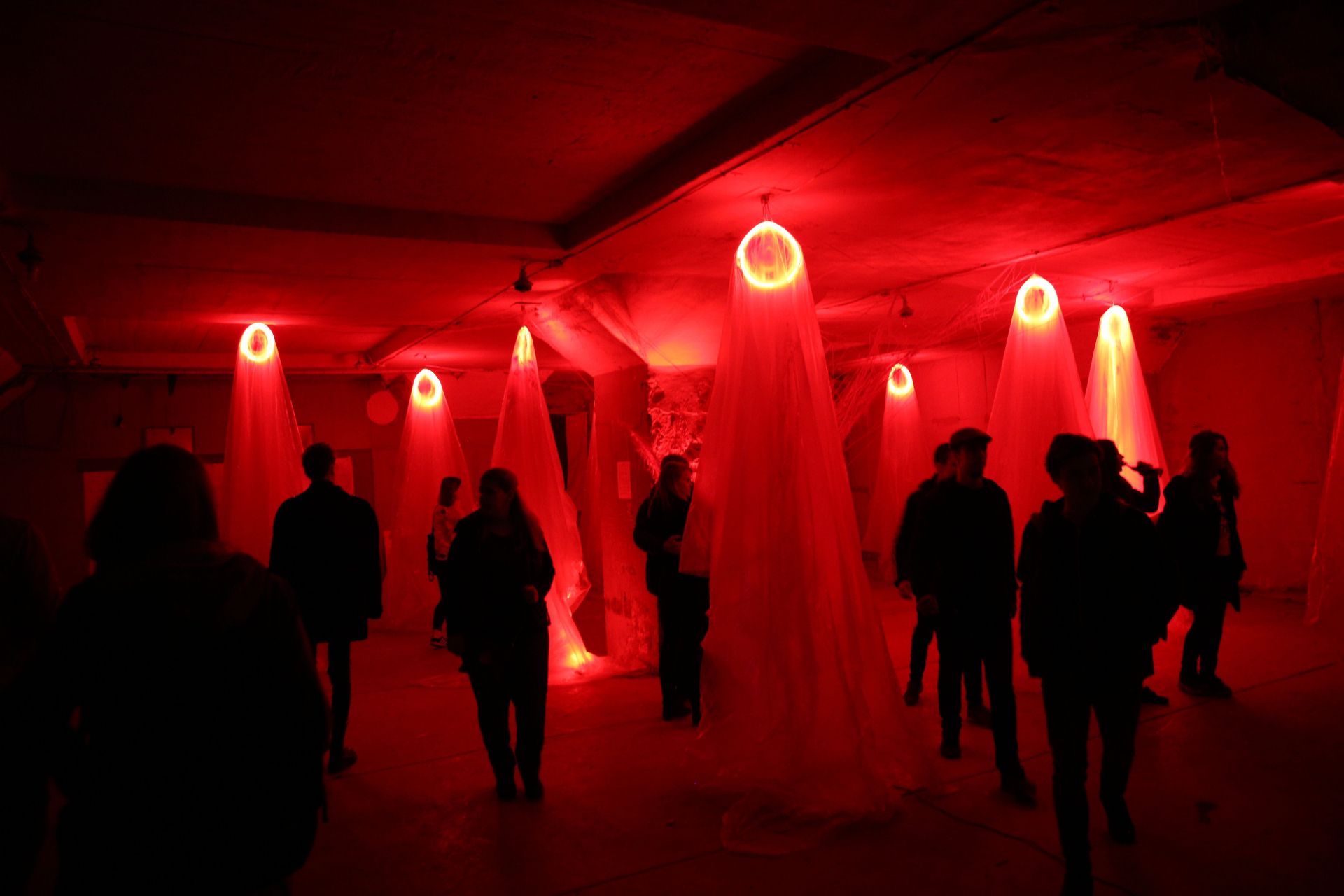 Ближче до вечора відкрили двері локації Бункер та Вентиляційна. Там також тривали виставки. Пропонували взяти участь в соціальному експерименті — закрити очі непроглядною тканиною, а вуха навушниками, і так пройти в окрему кімнату. А вночі у Бункері влаштували вечірку з електронною музикою.