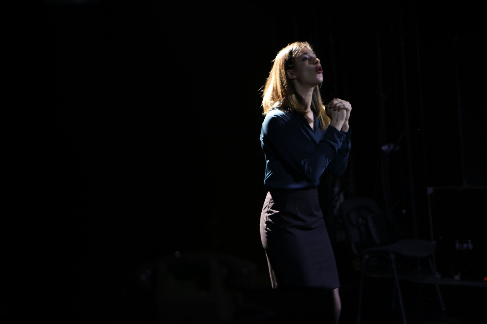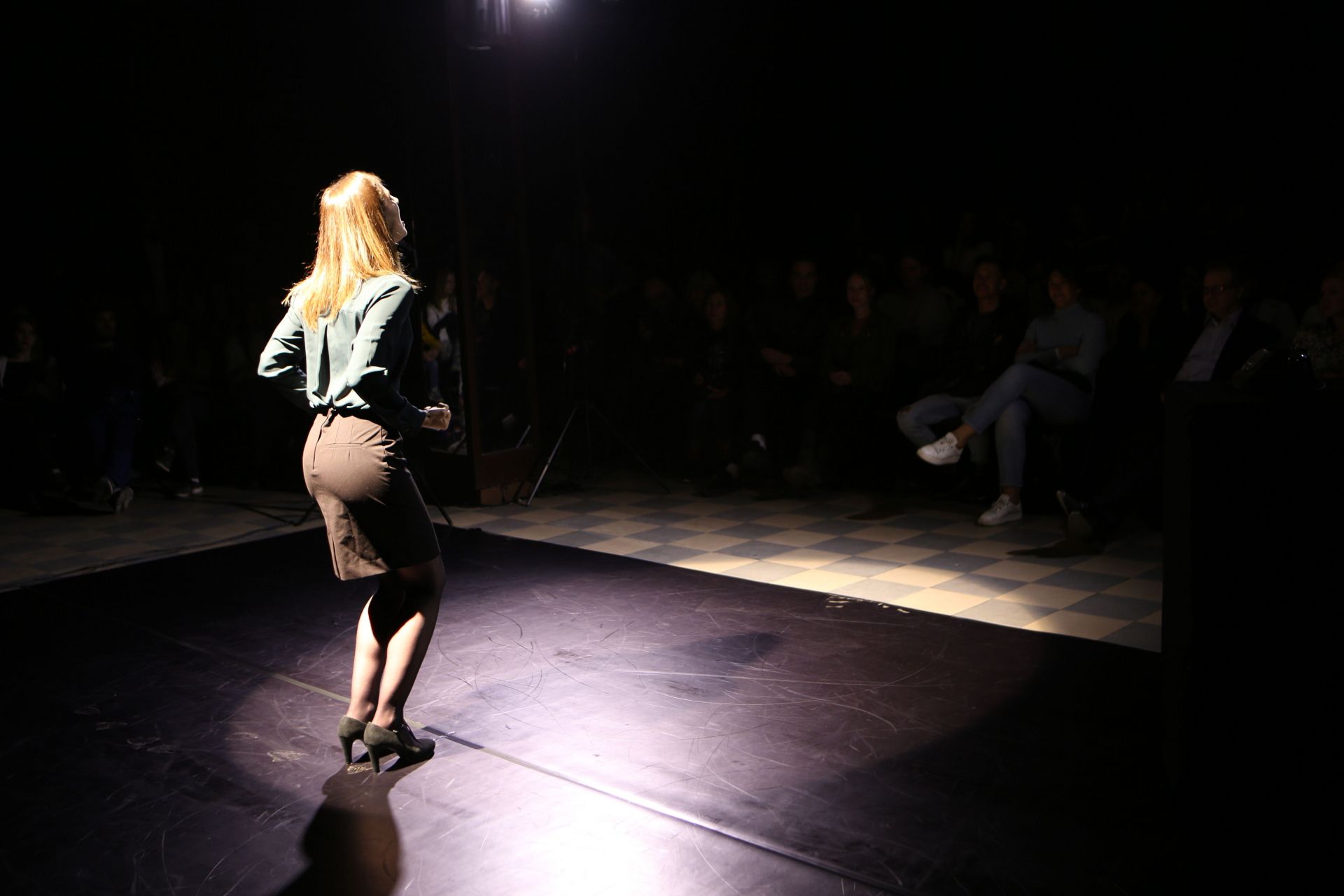 У великій театральній залі показували швейцарську виставу «The Sensemaker». Усе, що бачили та чули глядачі — це дзвінок телефону та дівчину, яка прийшла на співбесіду. Музичні тексти змінювалися нестандартно, так само як і рухи дівчини на високих підборах. Текст моноспектаклю вона показувала мовою жестів. І під час її виступу в повітрі відчувалася напруга, хоча у дівчини на обличчі була завжди усмішка.