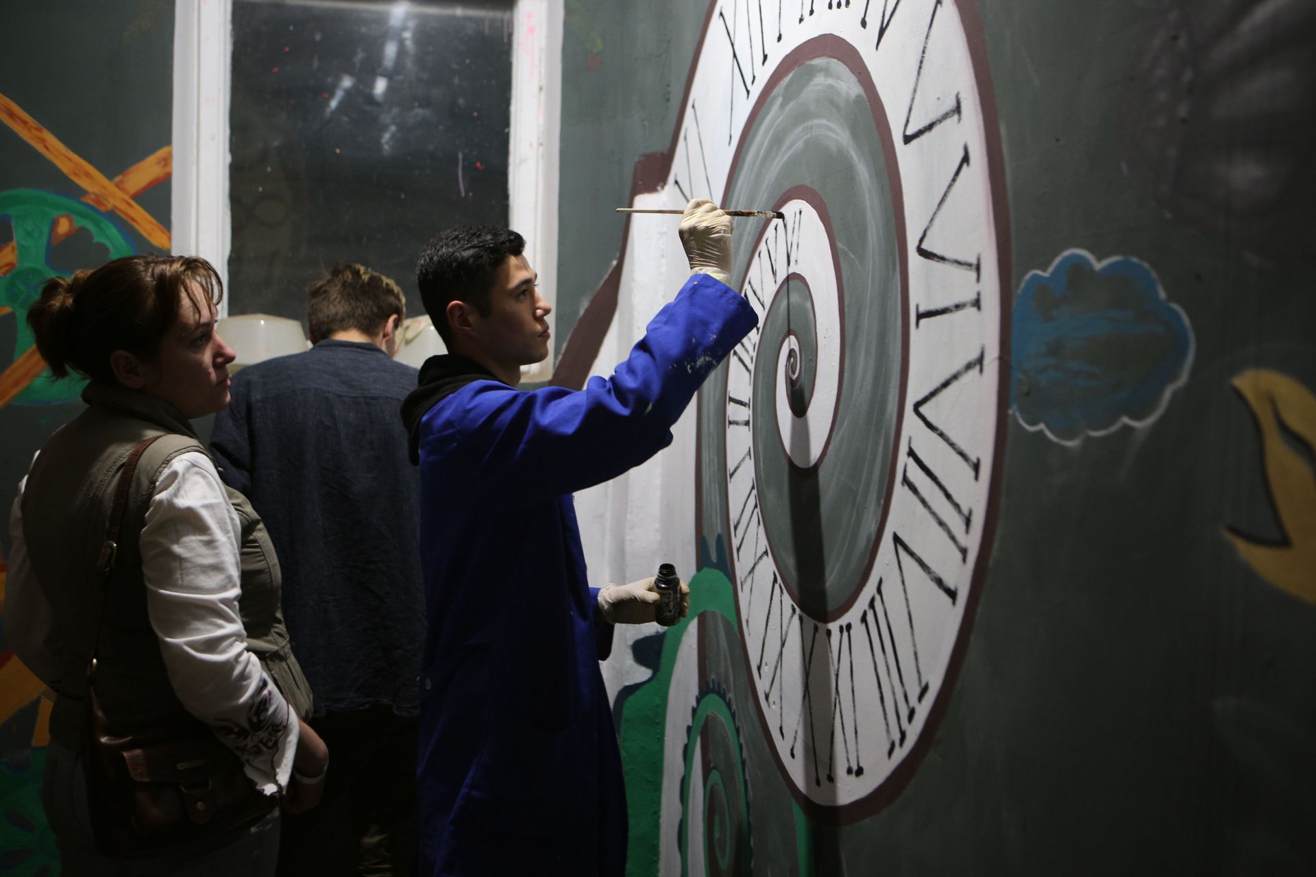 ВІЗУАЛЬНА ЧАСТИНА Найбільше подій проходять усередині двох будівель. Одразу на вході у головний корпус зустрічаємося з інсталяціями та картинами. На стінах коридорів малюнки, написи, які змушують глядачів замислитися.