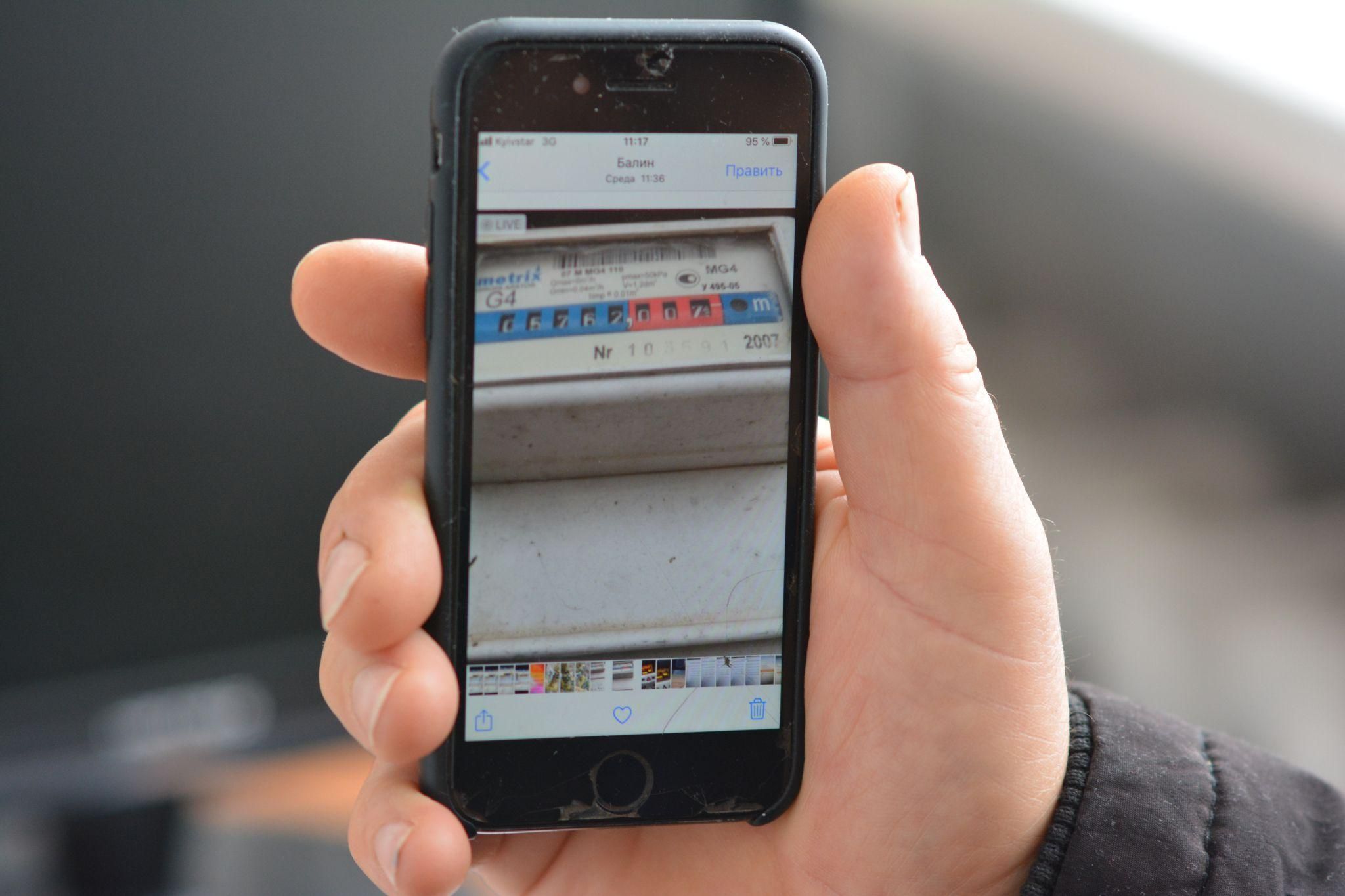 На підтвердження своїм словам він демонструє фотографію лічильника, яку робив в середині листопада цього року. На ньому показники — 5762.