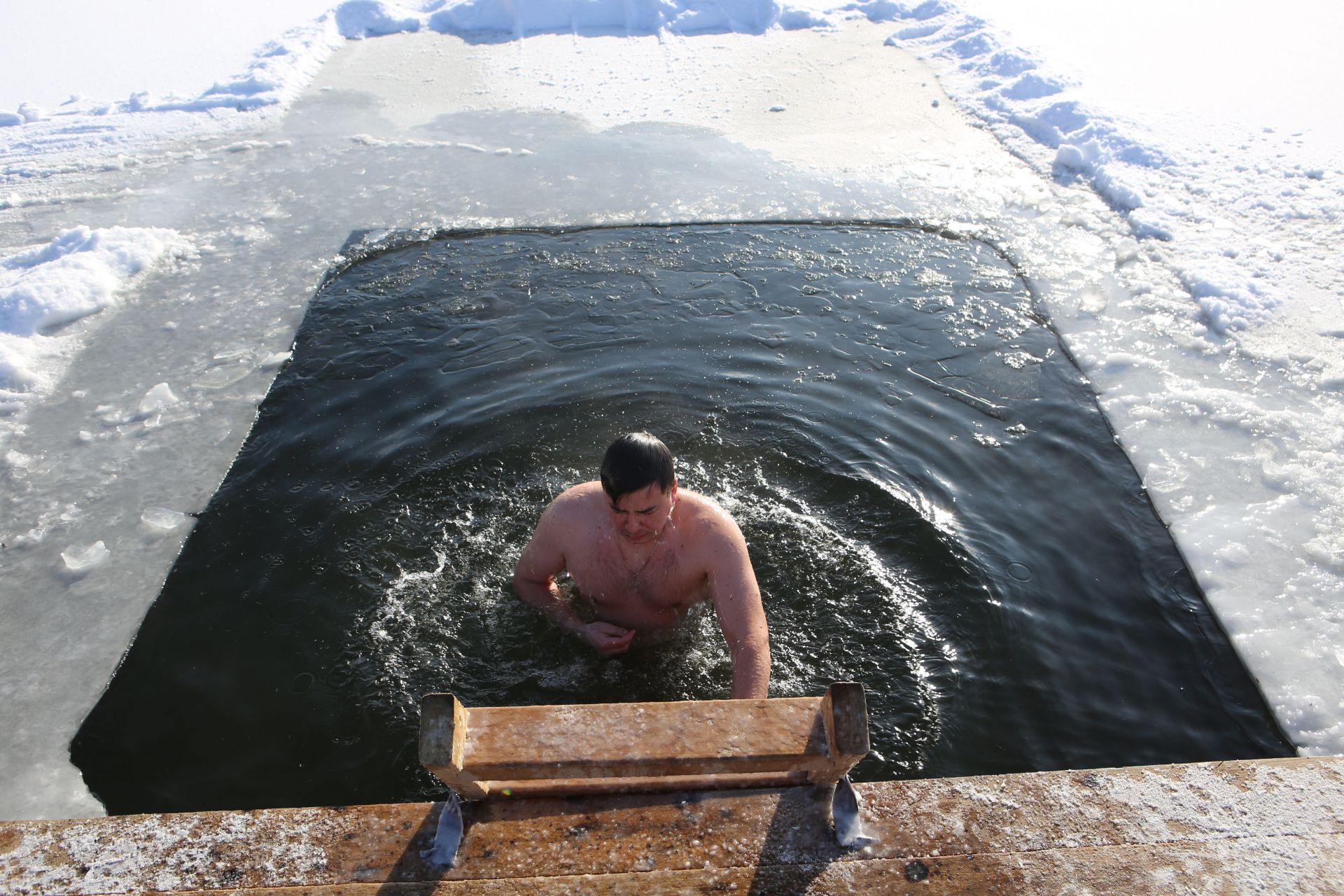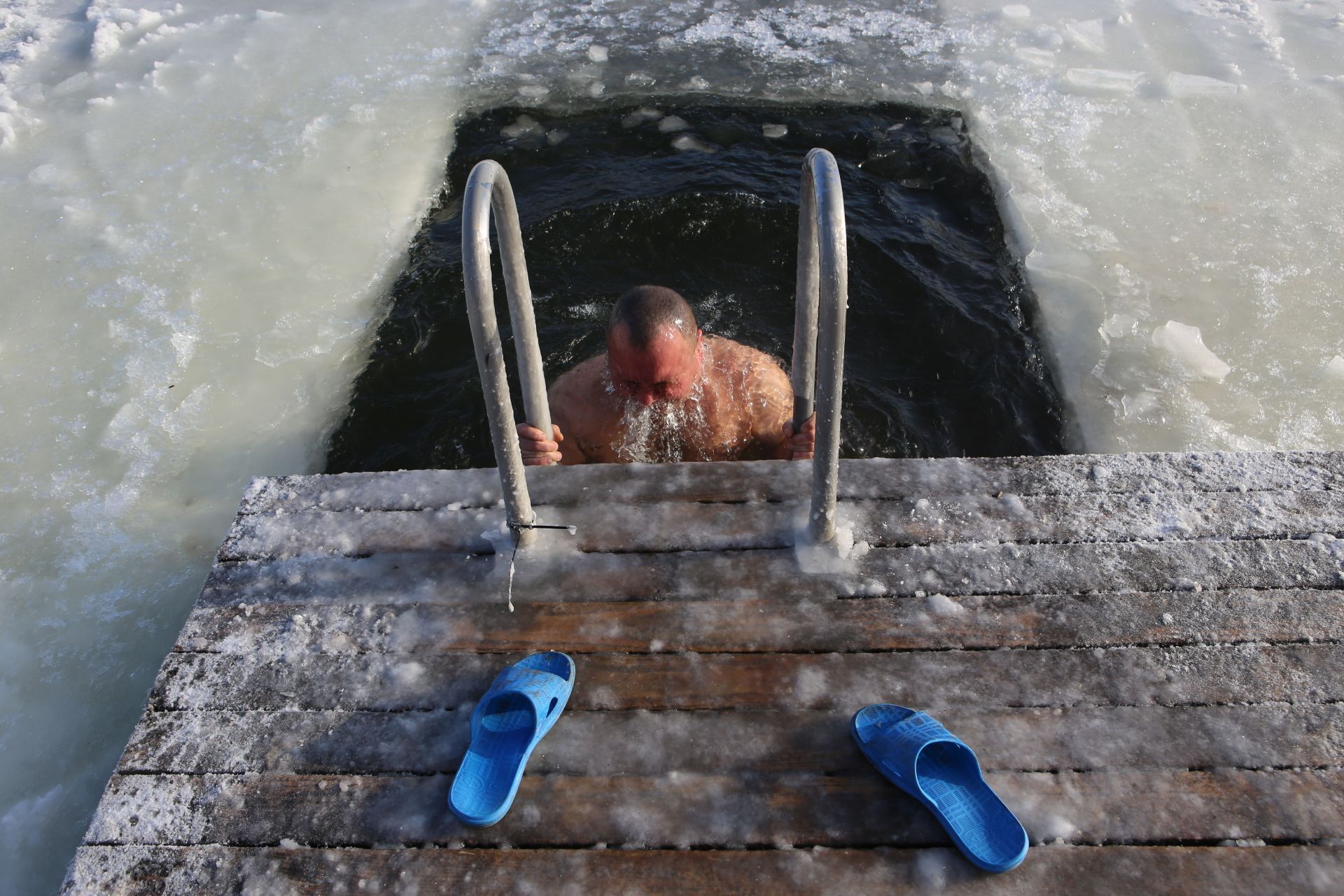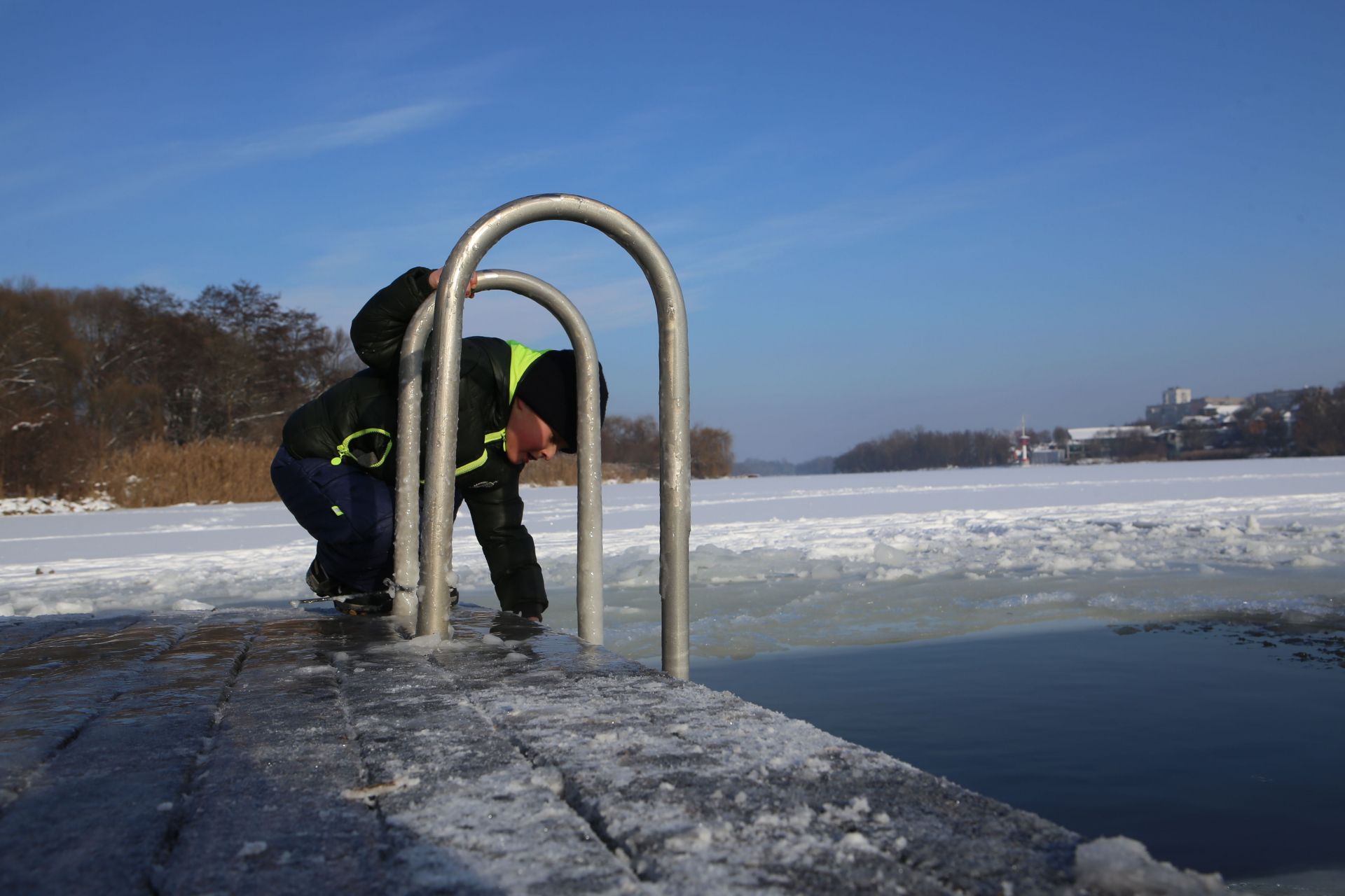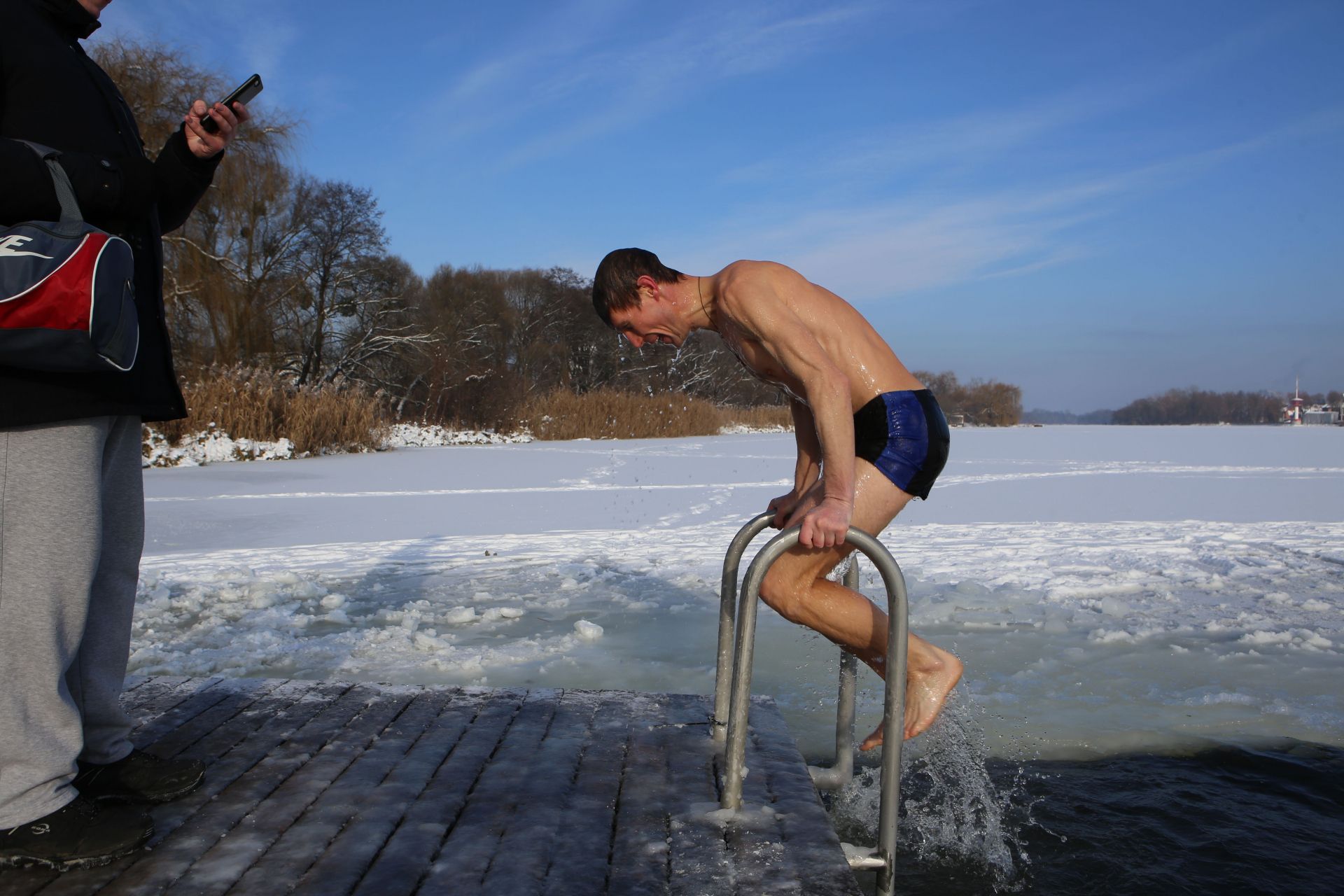 — Як водичка? — запитуємо хлопця, який щойно виліз з ополонки.