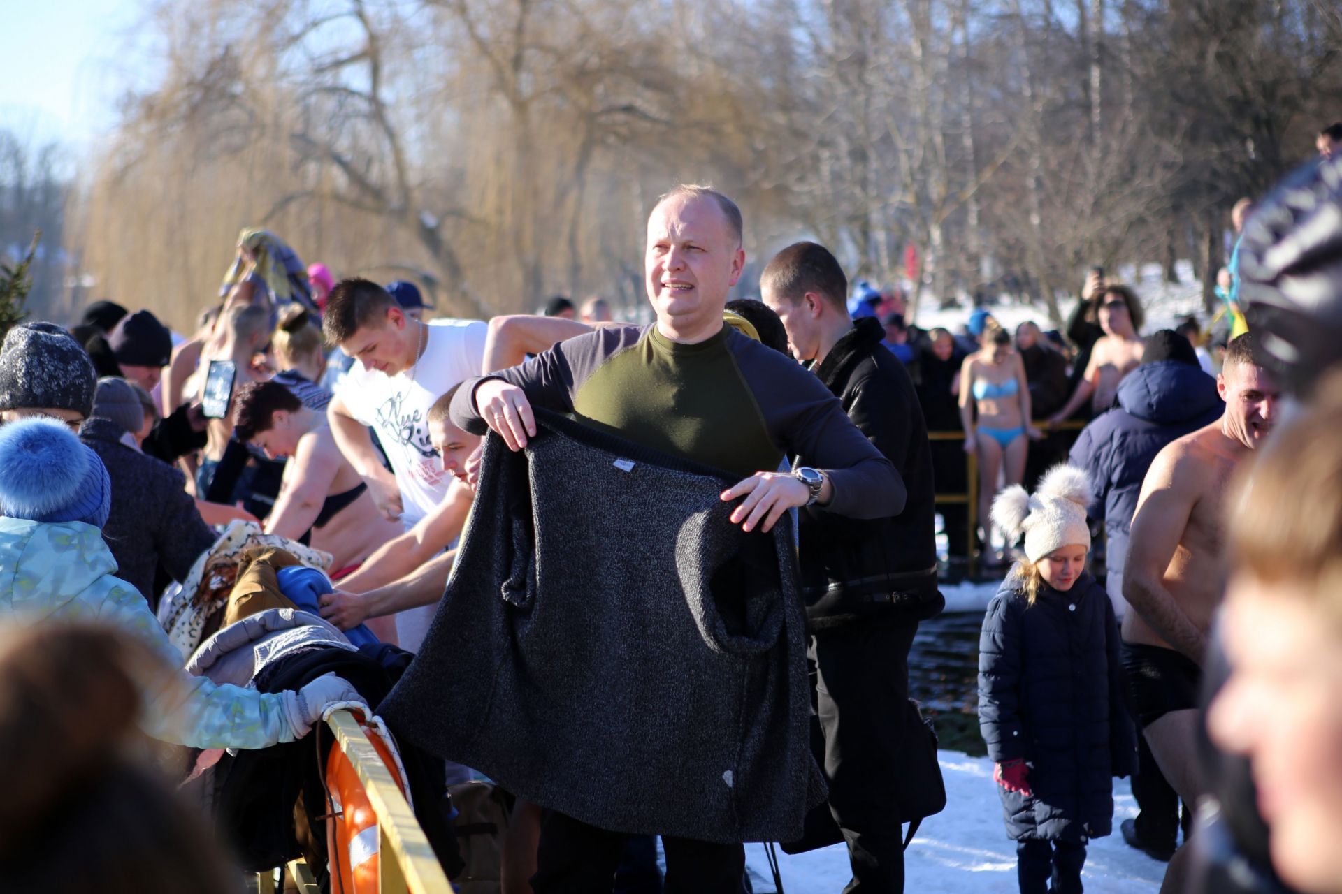 Парк Дружби народів, що межує з Вишенським озером, цього дня був заповнений людьми. Натовп вже збирався на вході, а чим ближче до озера — тим було більше людей. Хтось вже поспішав додому, аби зігрітися чаєм чи чимось «міцнішим». А дехто навпаки — впевнено крокував в бік озера, тримаючи в руках пакети з рушником і термосом.
