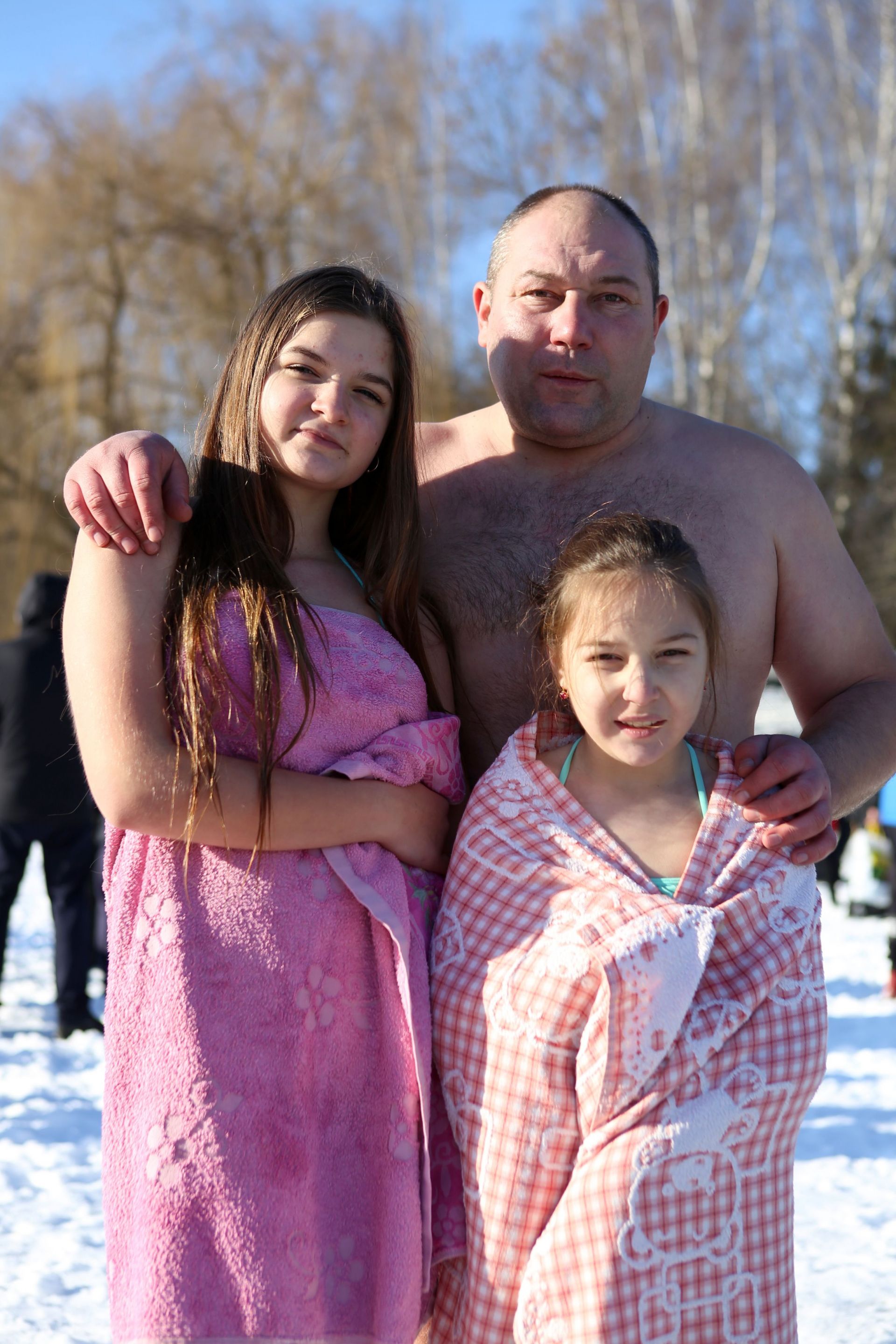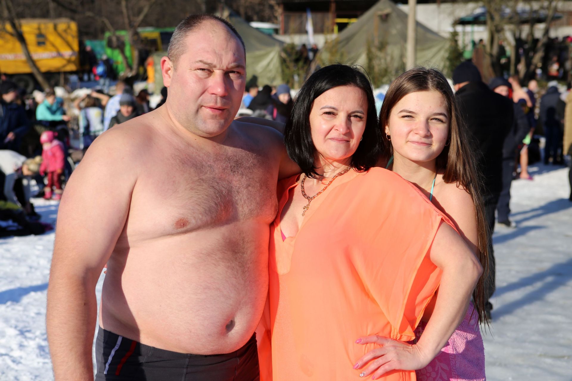 — Щороку ходимо, але це вперше цілою родиною купалися: чоловік, дві доці та я. Страх звісно є, що діти можуть захворіти після купання. Але вони сильно хотіли, і в мене доньки холоду не бояться.
