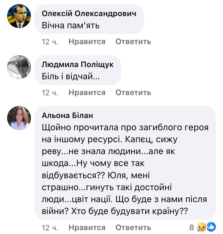 «Згасла ще одна посмішка…Згасла ще одна зірочка…Йому навік залишиться 23…Наша втрата... Вадим Кондратюк — випускник Вінницького ліцею №18 та його друг…Артем Іванишин …Немає слів… Тільки біль…», — пише Катерина Поджаренко у Фейсбук.