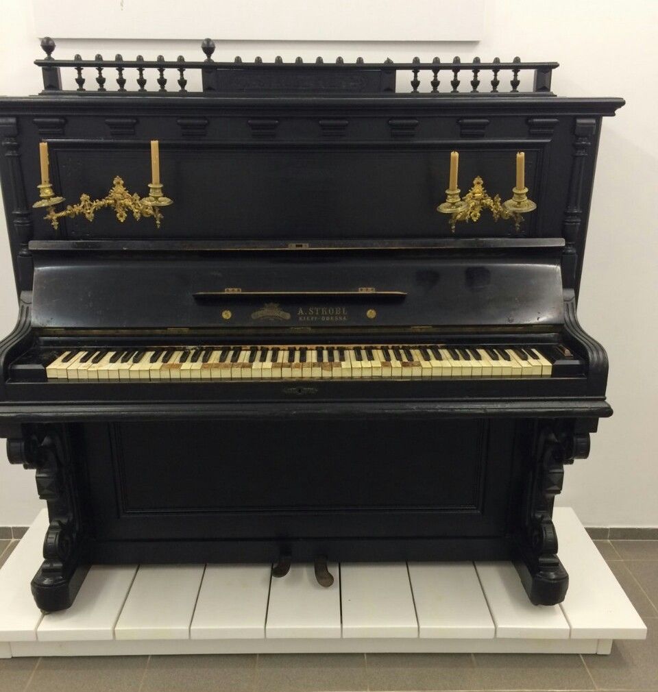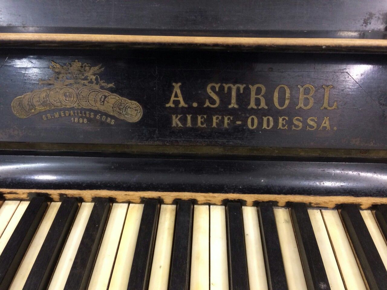 Коли підняти кришку піаніно, на її нижній стороні, ліворуч від центру, значиться дата: 1896. Над нею слова: «Gr.Medailles.bors» і зображення багатьох медалей. Малюнок і слова виконано у формі дуги. По центру кришки великими літерами ще один напис: «A.STROBL KIEFF-ODESSA».