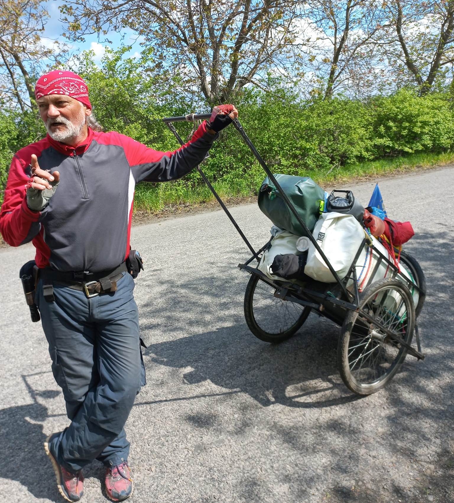 Гордієнко вирушає в дорогу з невеликим візком. У якому знаходиться його нехитрий багаж.