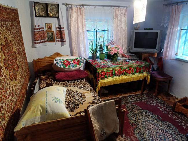Володимир Маринчук викупив і відновив сільську хату, створивши музейний простір із петриківським розписом, старовинними килимами, іконами та предметами побуту. Душ і туалет — на вулиці, як у предків.