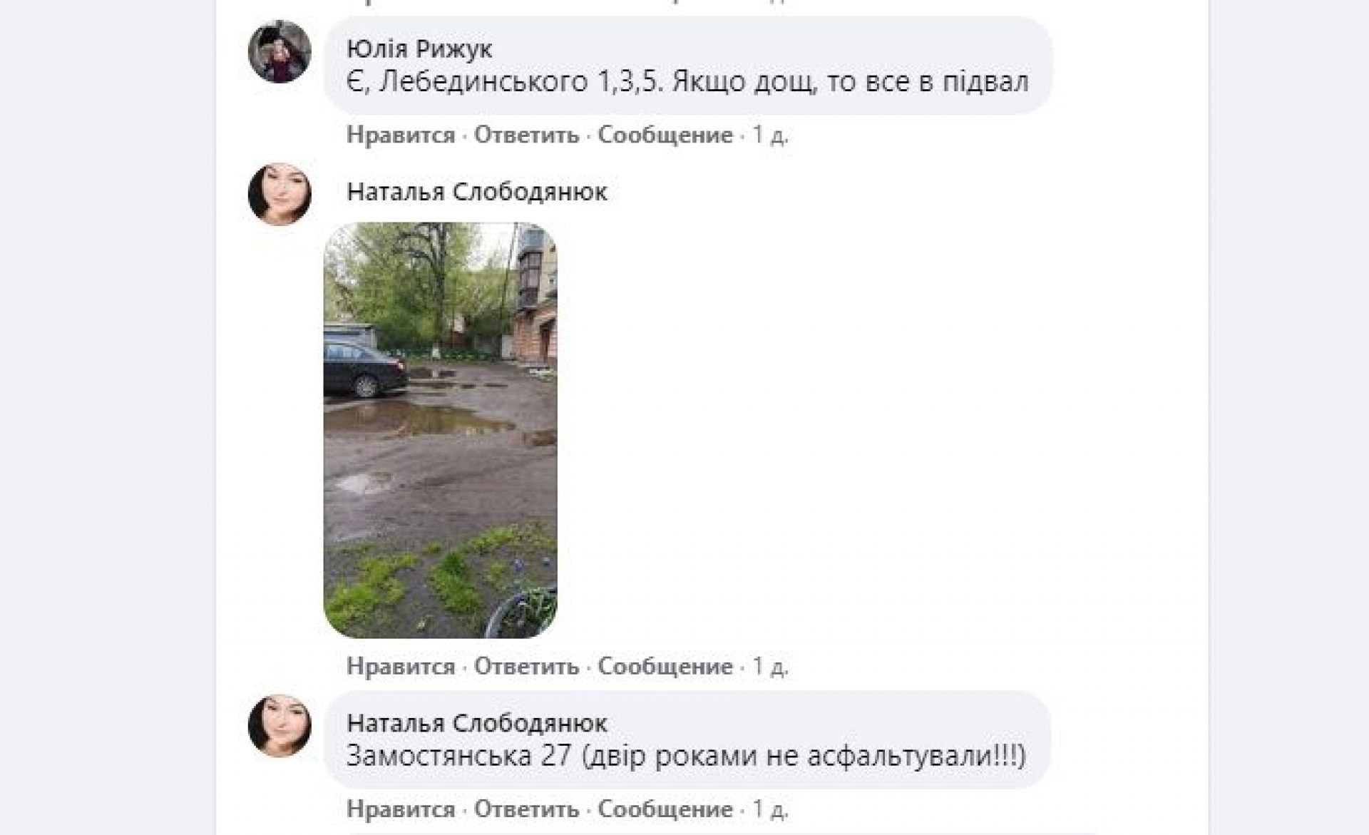 «Замостянська 27. Двір роками не асфальтували!!!», — пише Наталія Слободянюк.