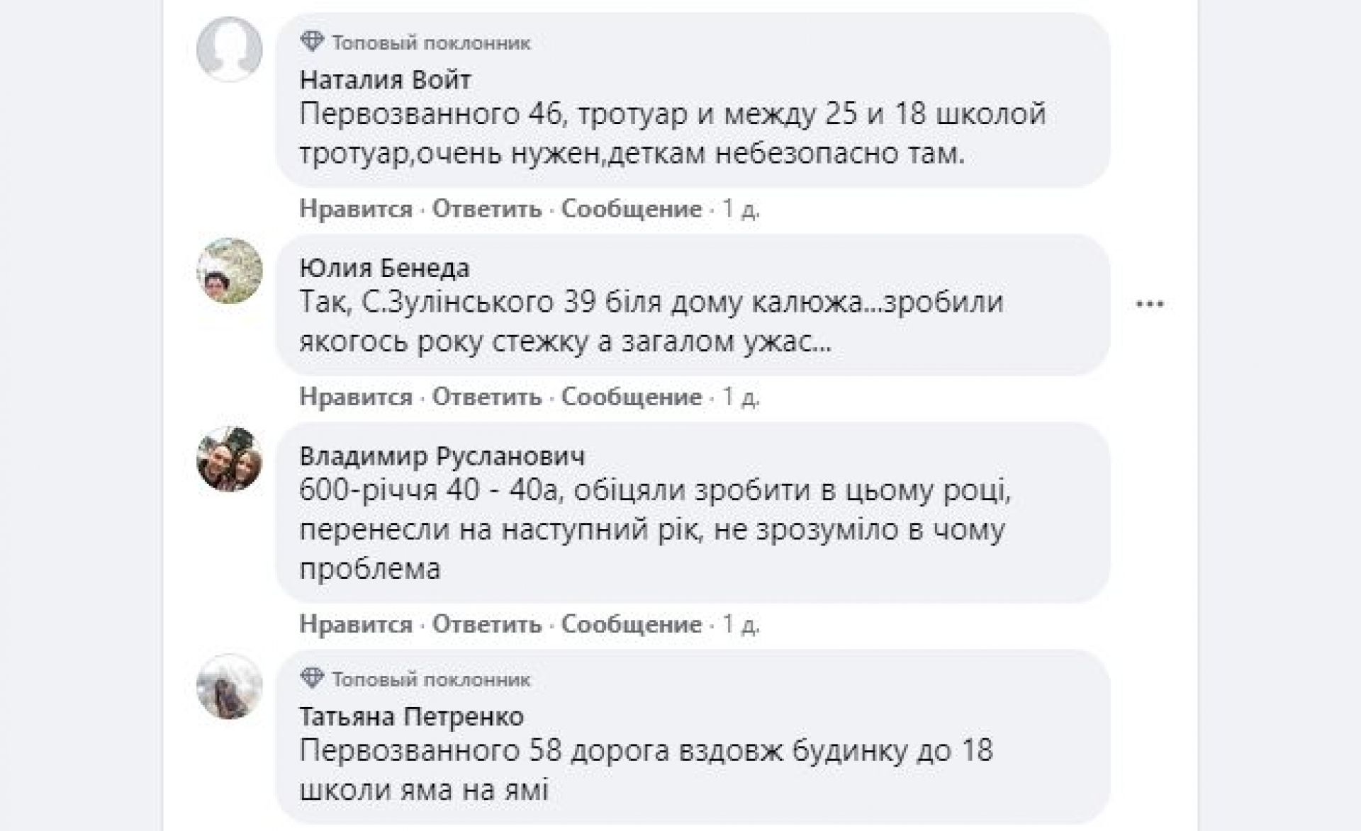 «600-річчя 40 - 40а, обіцяли зробити в цьому році. Перенесли на наступний рік. Не зрозуміло в чому проблема», — пише Володимир Русланович.