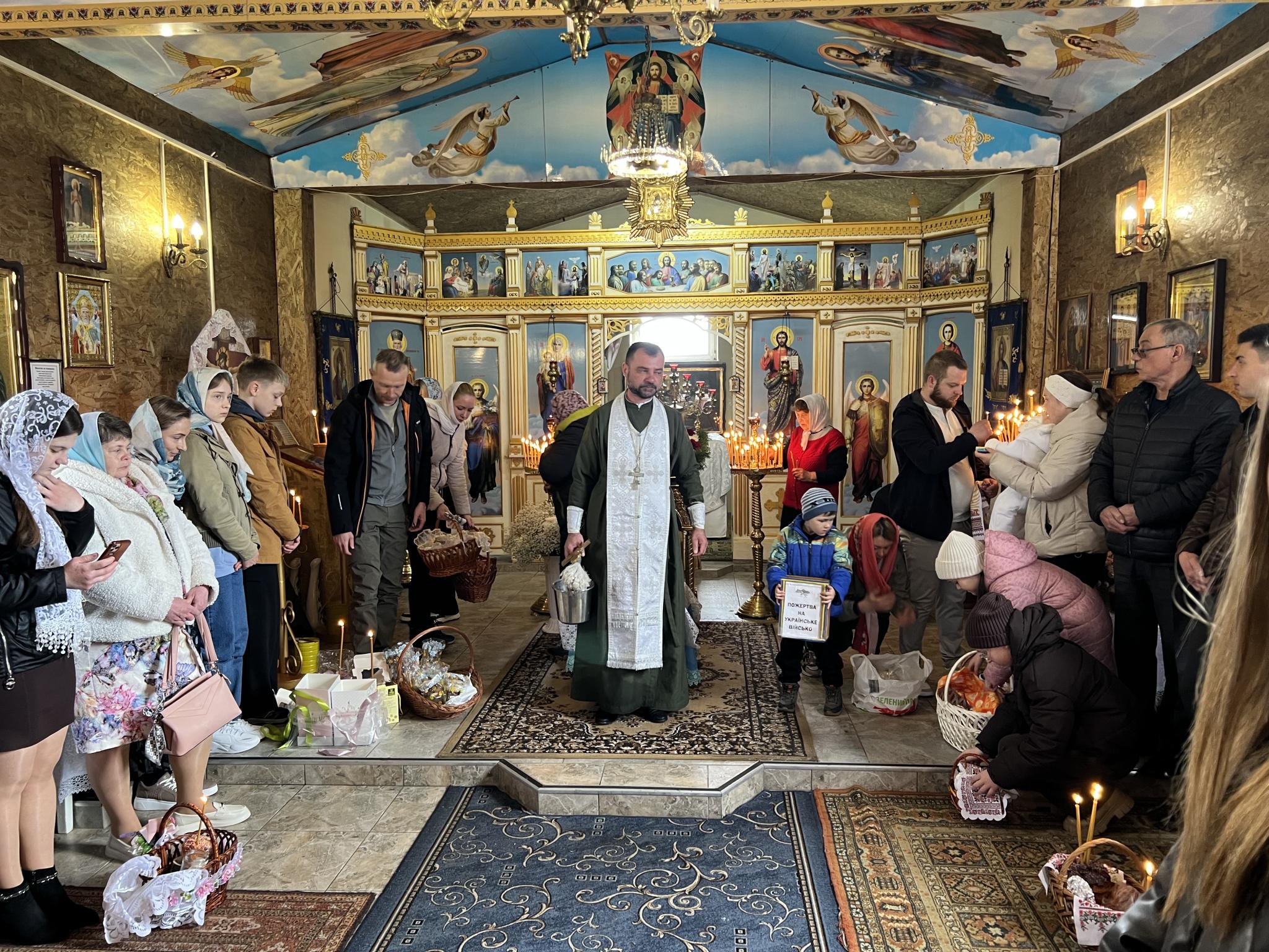 У Храмі Різдва Пресвятої Богородиці о 6.30 розпочалося святкове богослужіння, після нього — освячення великодніх кошиків. Сотні вірян прийшли до церкви, аби освятити паски, крашанки, сир, масло і ковбаси. Часто смаколики були прикрашені в патріотичному стилі, люди одягнені у вишиванки.