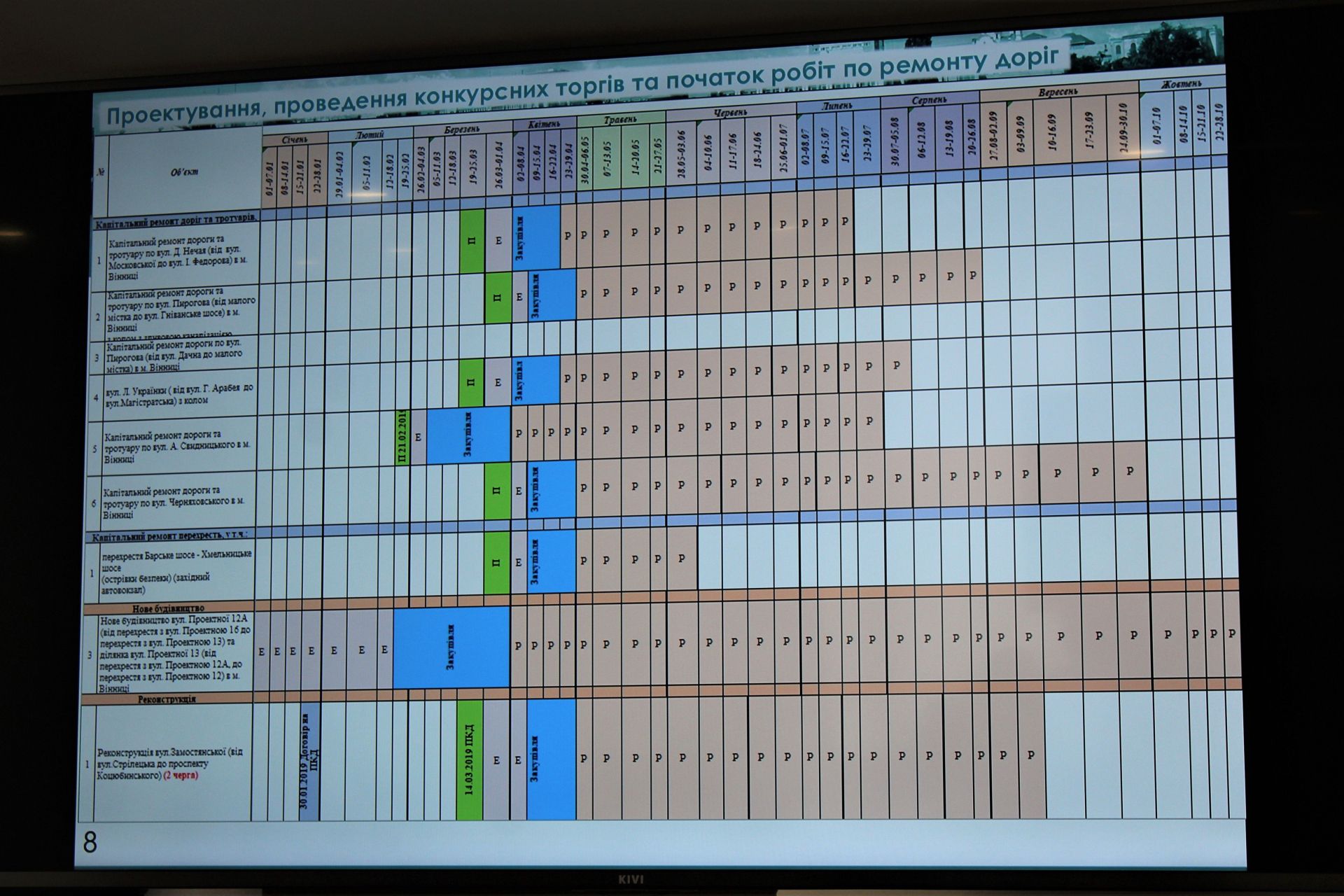- На засіданні виконкому міської ради показали графік капітального ремонту, будівництва доріг у Вінниці.