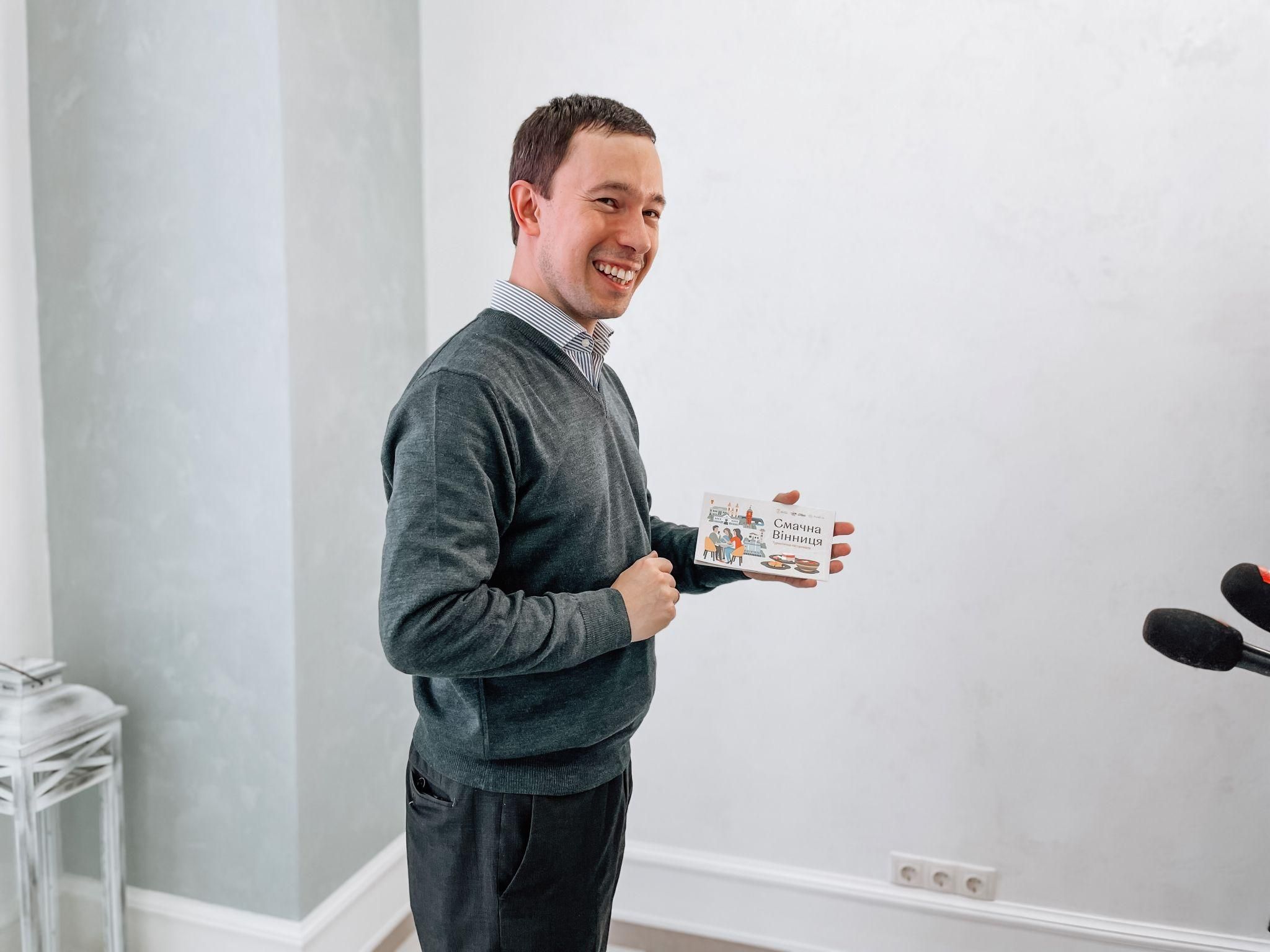 — Ще кілька років тому було складно порекомендувати нашим гостям місця, які обов’язково варто відвідати для відчуття смаку Вінниці, — розповів директор департаменту маркетингу міста та туризму Олександр Вешелені. — З того часу сформувався певний перелік must eat і must drink, який варто спробувати у Вінниці: страви подільської кухні, страви з вишнею, солодощі, настоянки, вінницьке вино чи пиво. Віднині ми маємо ретельно скомпоноване й авторитетне видання (онлайн та офлайн), яке може швидко зорієнтувати любителів гастрономічних вражень та атмосферних закладів.