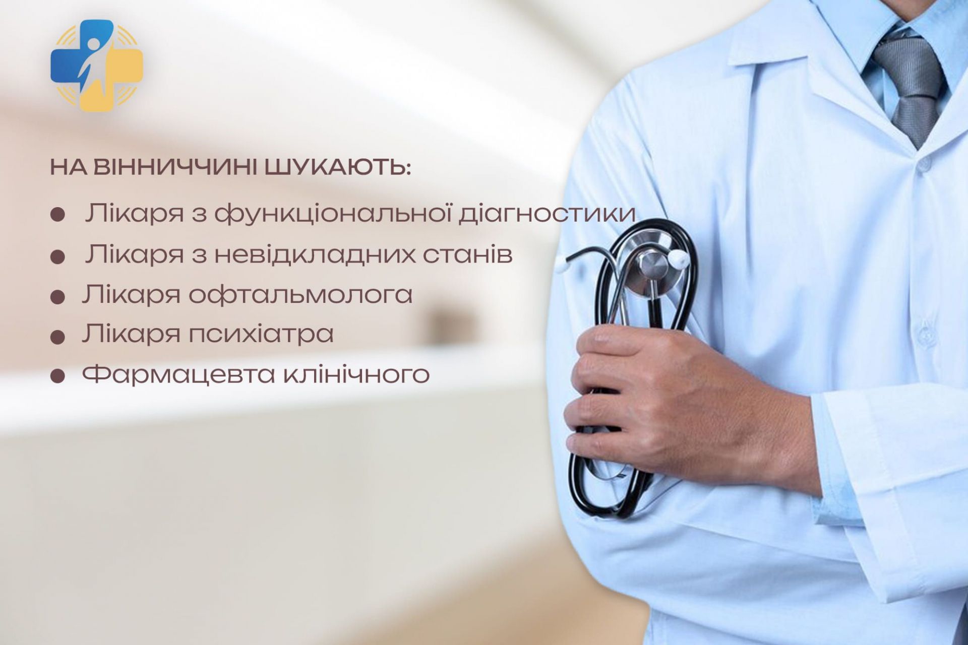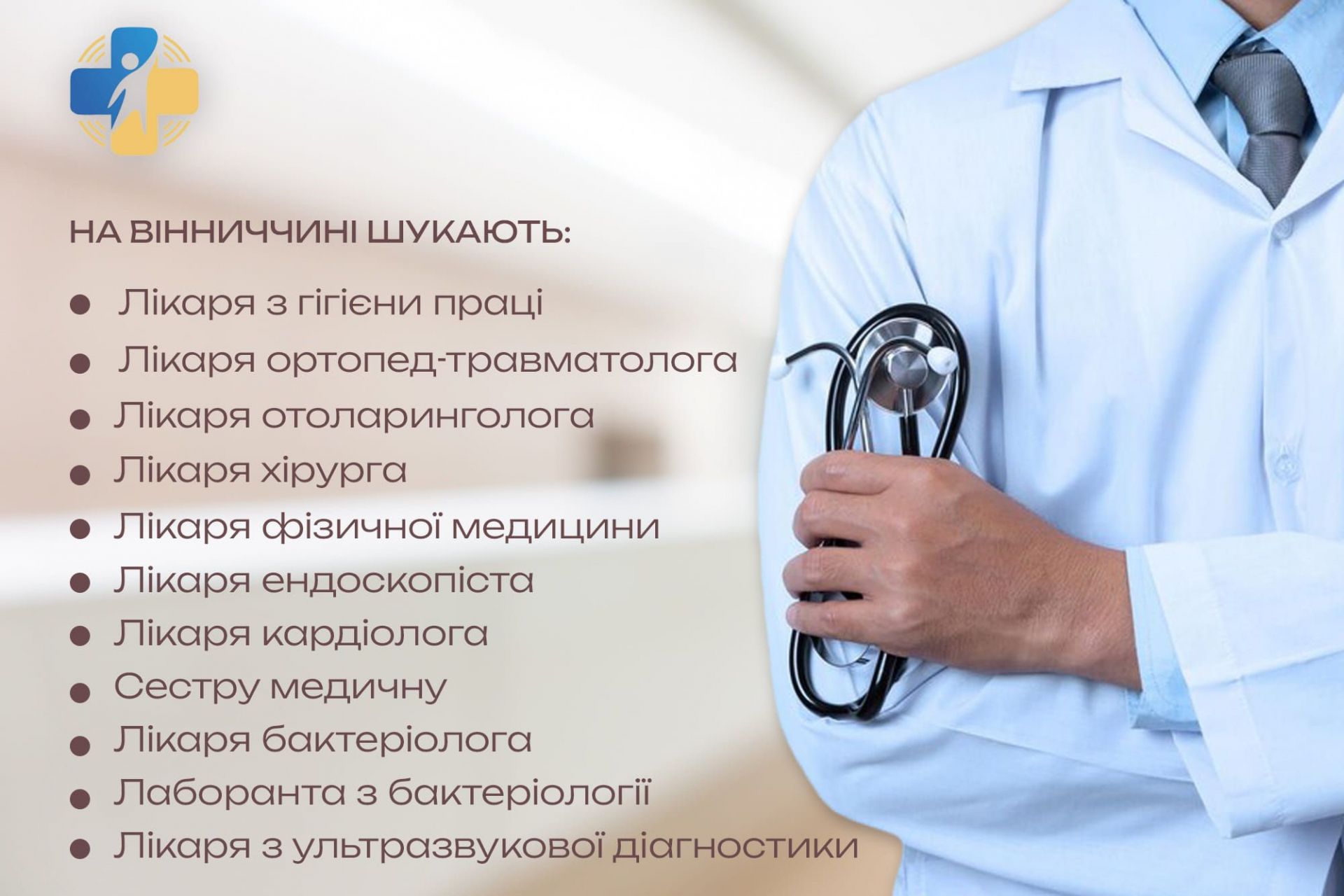 - На Вінниччині шукають лікарів. Потрібні, в тому числі, офтальмолог, психіатр, хірург, ендоскопіст, кардіолог та інші фахівці. Всього більше трьох десятків вільних місць.