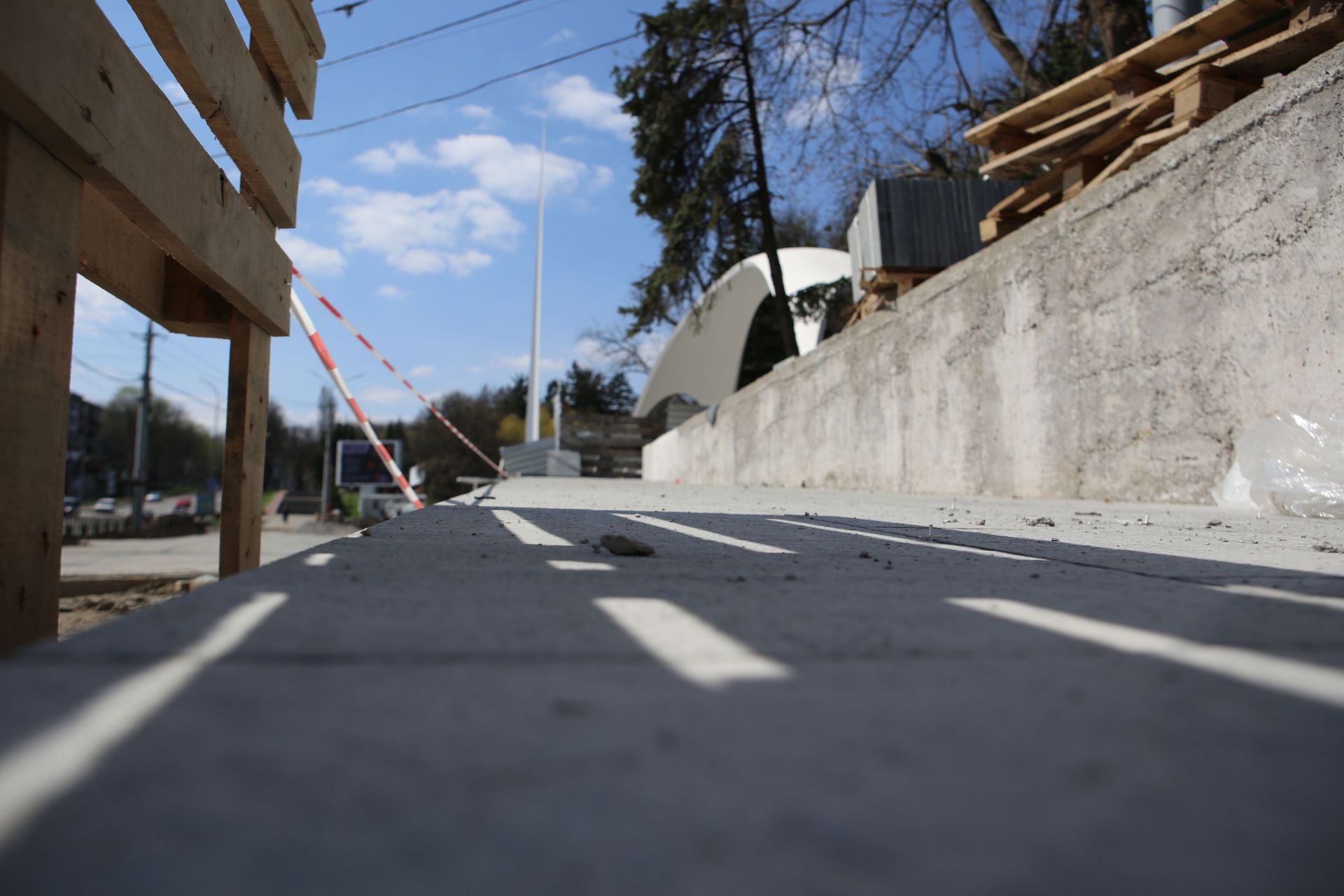 Але багато робіт все ж були виконаними. Наприклад, замінили лавочки і встановили світлодіодні ліхтарі, укріпили Арку та шпиль, замінили плитку зі сходами.