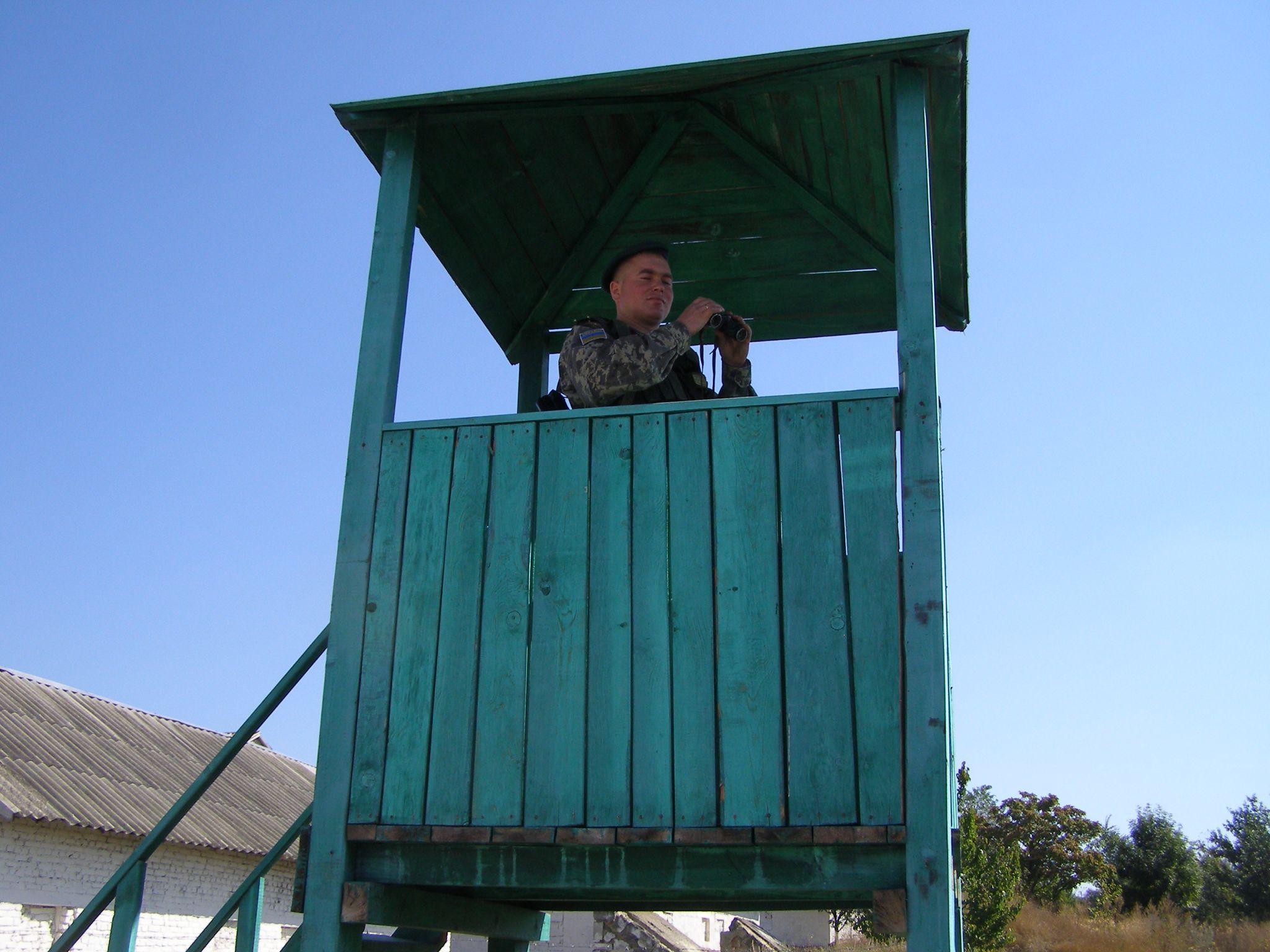 На горі два вагончики. В одному знаходяться митники, в іншому — прикордонники. Тут же оглядова вежа, з якої видно територію сусідньої держави.