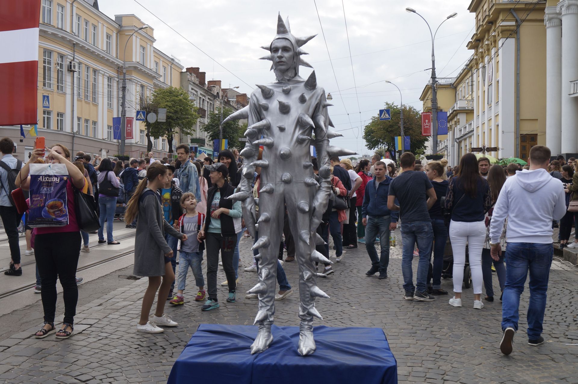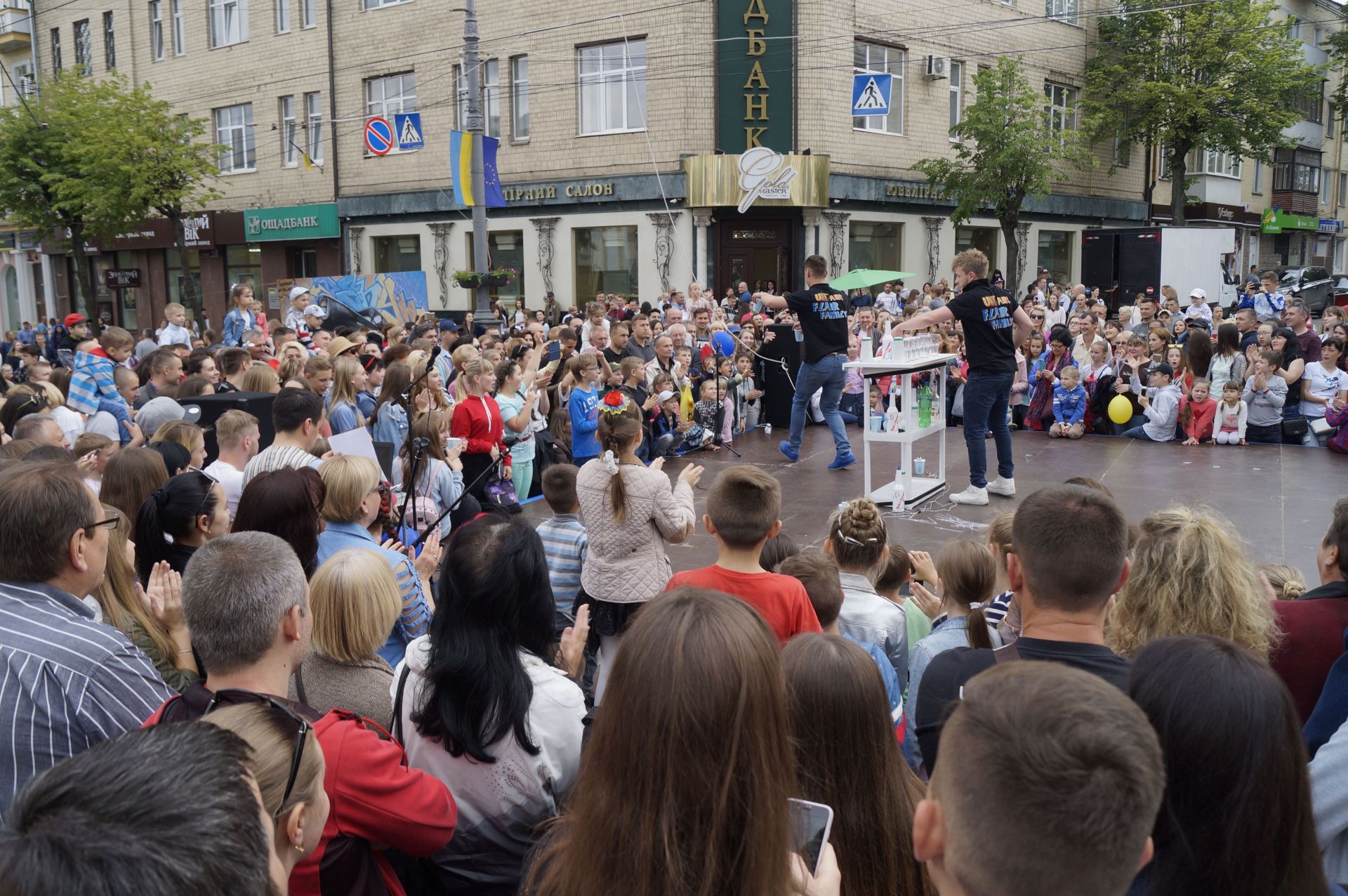 Одних лише концертних площадок посеред вулиці було три. Їх проходити було особливо складно, тому що там збиралось багато людей. Перед сценою, де виступав вінницький оркестр Вінбенд, стояли лавочки, збиті з піддонів. Незважаючи на все, люди цікавились святом і приходили цілими сім’ями та компаніями.