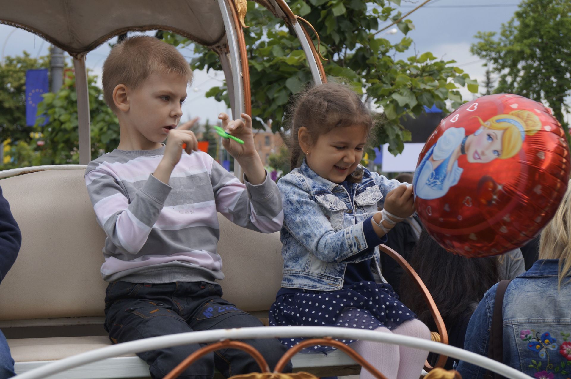 - У нас зламалась коляска, тому приніс доньку на руках, - розповідає Євгеній. - Ми з самого народження часто гуляємо, тому вона звикла до таких подорожей.