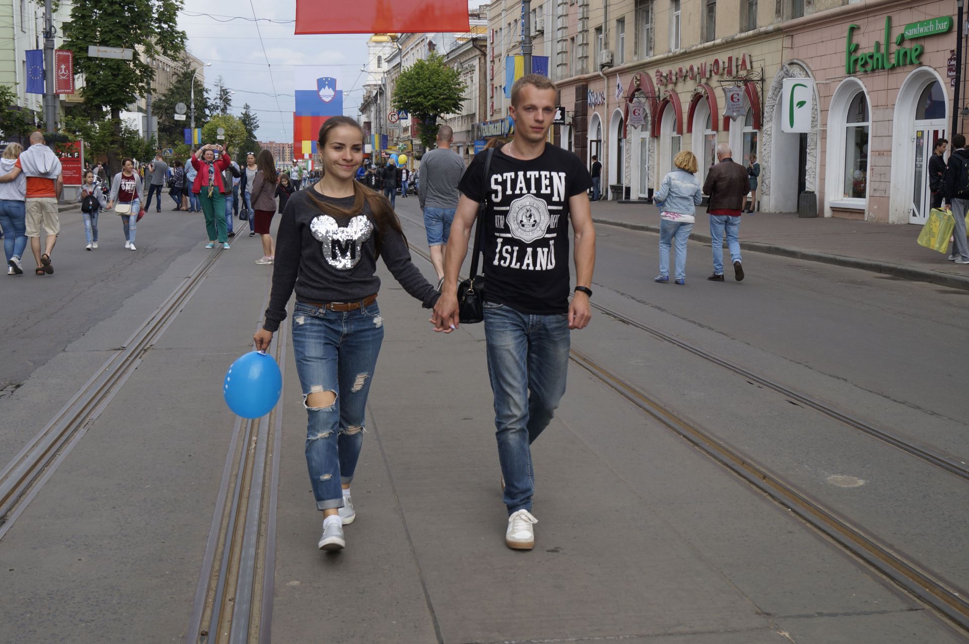 На вінницькому Дені Європи також були і гості з закордону. Барбара та Агнєшка приїхали з польського міста Кельце у складі офіційної молодіжної делегації. Дівчата ні слова не розуміють українською. Спілкуються англійською, але кажуть, що це не проблема. Багато вінницької молоді непогано знає англійську. Були дуже здивовані, що люди не сідають відпочити на бордюр, а шукають стільчики. Кажуть, що у Кельце люди більше звикли сидіти на землі.