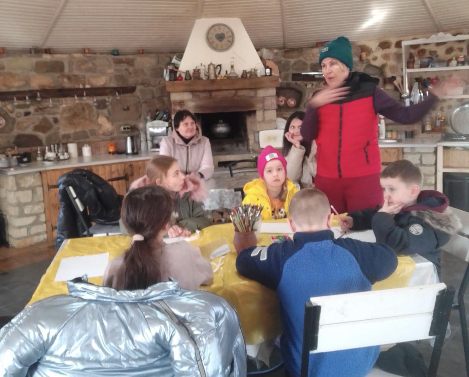 Буша теж стала другою домівкою для переселенців. Світлана Телець посиляла в своїх будиночках тих, хто тікав від війни. Для дорослих та малечі проводила сеанси арт-терапії.