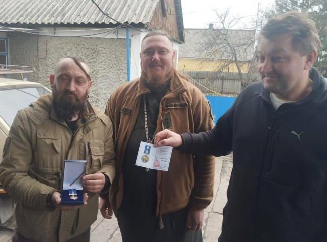 - Нагороди вручав головний капелан Донецької єпархії архімандрит Діонісій за жертовне служіння та внесок у захист свободи й незалежності.