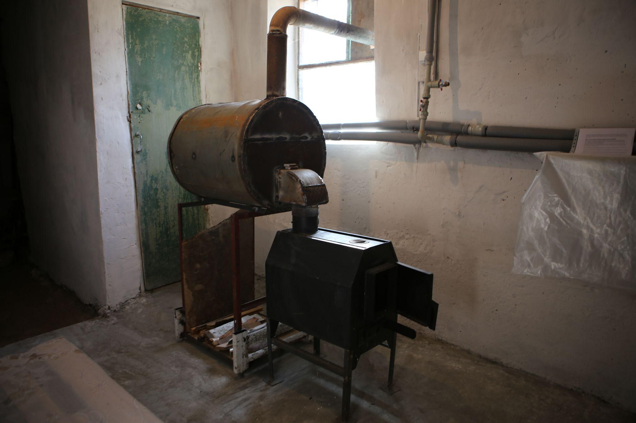 Голова ОСББ одразу веде в пункт обігріву, який нещодавно доробили. В невеликій кімнаті, яка закривається дверима, стоїть буржуйка. Її модернізував місцевий житель Іван Верещак — приварив ще металеву бочку, аби затримувати більше тепла.