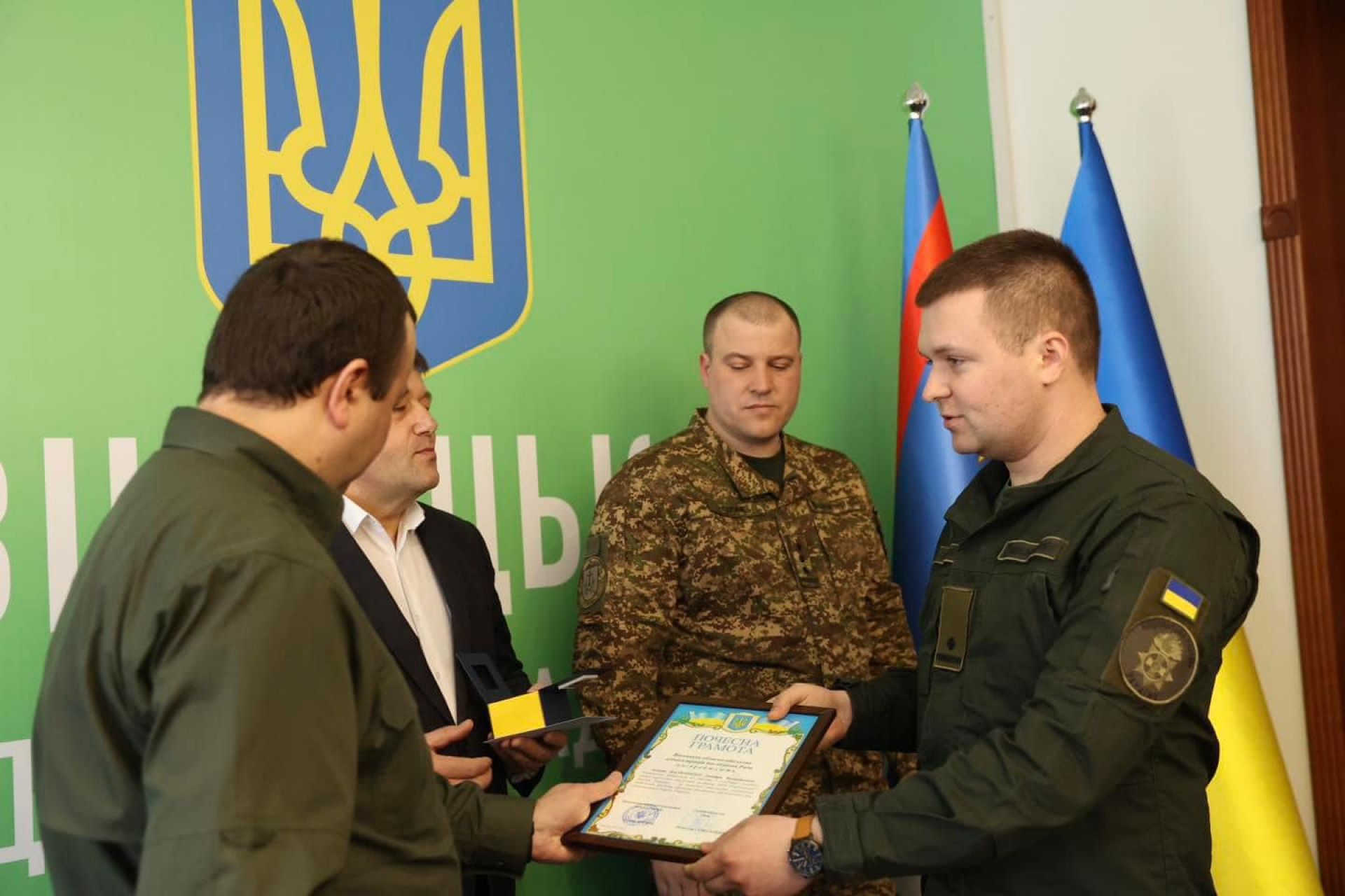 - Начальник Вінницької обласної військової адміністрації Сергій Борзов привітав з 10-ою річницею створення Національної гвардії України та вручив нагороди і відзнаки військовослужбовцям Вінниччини.